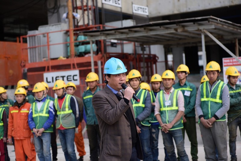 Tại công trình xây dựng, Thứ trưởng Bộ Xây dựng Bùi Phạm Khánh và Chủ tịch Công đoàn Xây dựng Việt Nam Nguyễn Thị Thủy Lệ đã ân cần thăm hỏi công nhân, lao động (CNLĐ) đang làm việc tại công trường, đồng thời động viên CNVCLĐ khắc phục mọi khó khăn, ra sức thi đua lao động sản xuất, đảm bảo an toàn, chất lượng và tiến độ thi công.