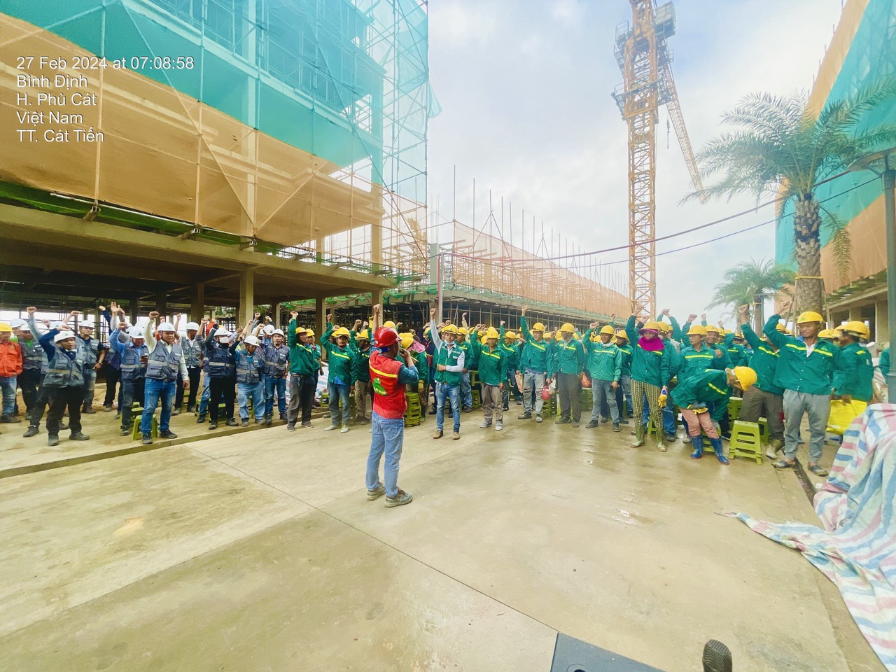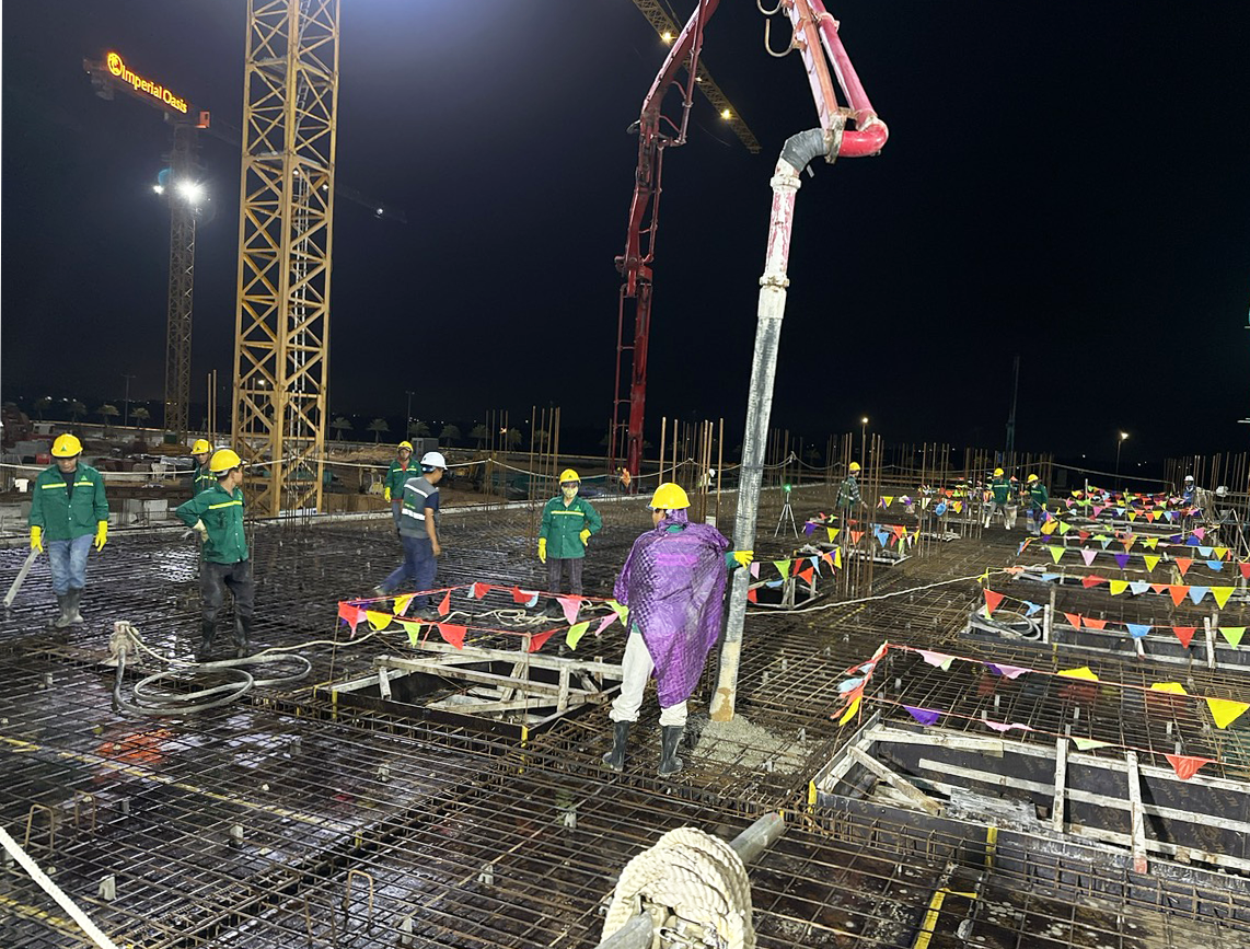 – Công tác thi công kết cấu phần thân: cất nóc 70/178 căn, đang thi công 45 căn tiếp theo;