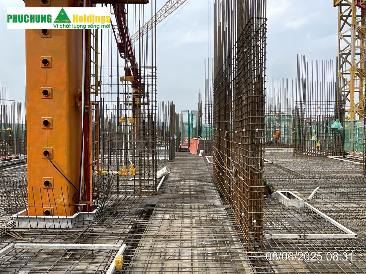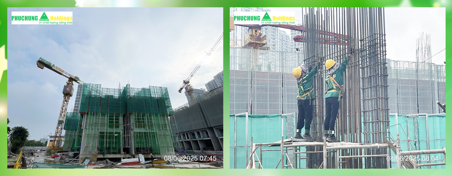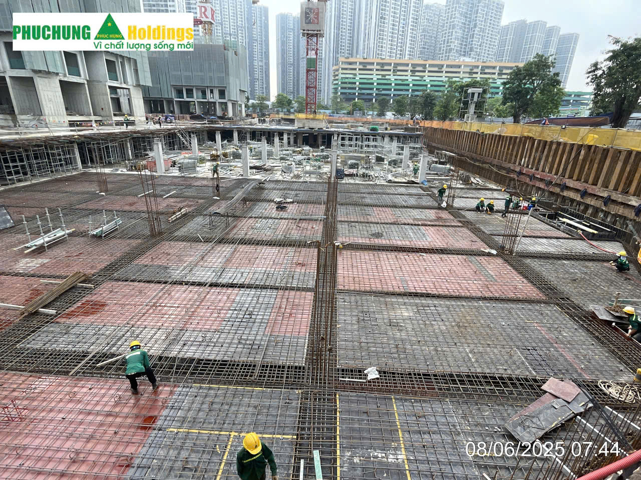 Trong nửa đầu tháng 6, công trường đã hoàn thành đổ sàn tầng 4 của Tòa V14, thi công xong sàn hầm B1 khu vực zone 2.5b và các hạng mục móng, sàn tại khu vực tiếp giáp Vinschool cũng đang được đẩy nhanh tiến độ.