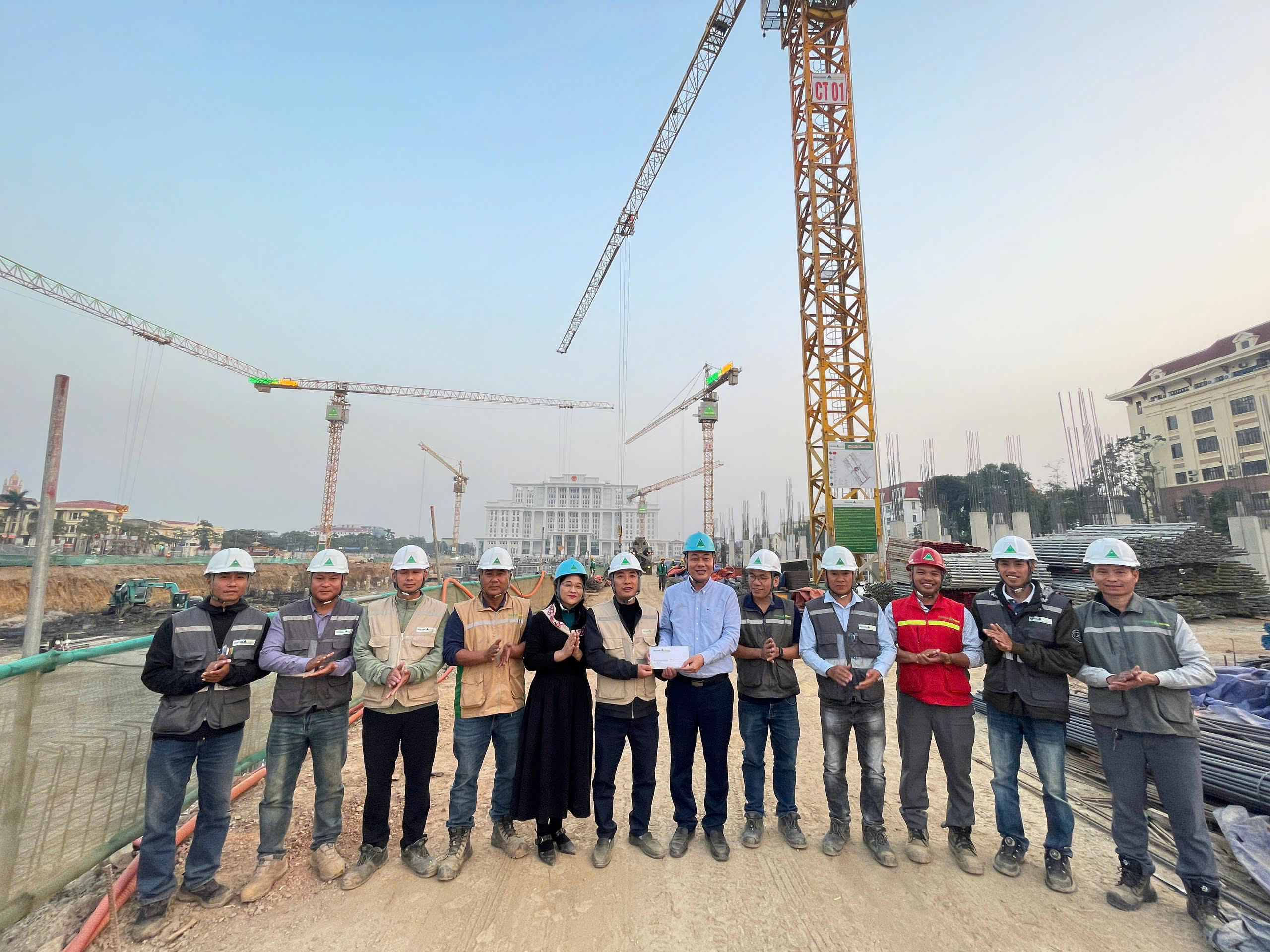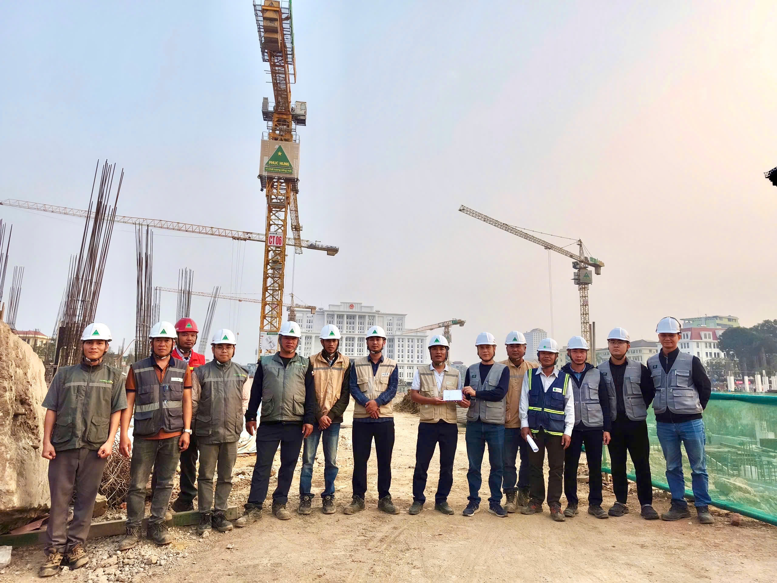 Chia sẻ và ghi nhận những nỗ lực của tập thể cán bộ kỹ sư, công nhân Phục Hưng Holdings, ngày 13/1/2026, ông Lê Hồng Hà - Giám đốc Ban Quản lý Dự án, đại diện Ban lãnh đạo Chủ đầu tư Taseco Land đã trực tiếp đến thăm hỏi, trao quà động viên và khích lệ tinh thần CBCNV đang ngày đêm bám công trường. Cùng đi với Lãnh đạo Chủ đầu tư có Phó Tổng giám đốc Lê Quốc Tuấn và bà Tô Thị Hồng Điệp, Chủ tịch Công đoàn cấp trên. Thay mặt Ban lãnh đạo Công ty, Phó Tổng giám đốc Lê Quốc Tuấn bày tỏ sự tin tưởng tập thể Ban Chỉ huy sẽ tiếp tục phát huy tinh thần đoàn kết, chủ động trong công tác điều hành, tổ chức thi công khoa học và hiệu quả, hoàn thành các mốc tiến độ trọng tâm của Dự án, tiến tới khóa nền hầm và hoàn thành kết cấu móng các căn liền kề shophouse.