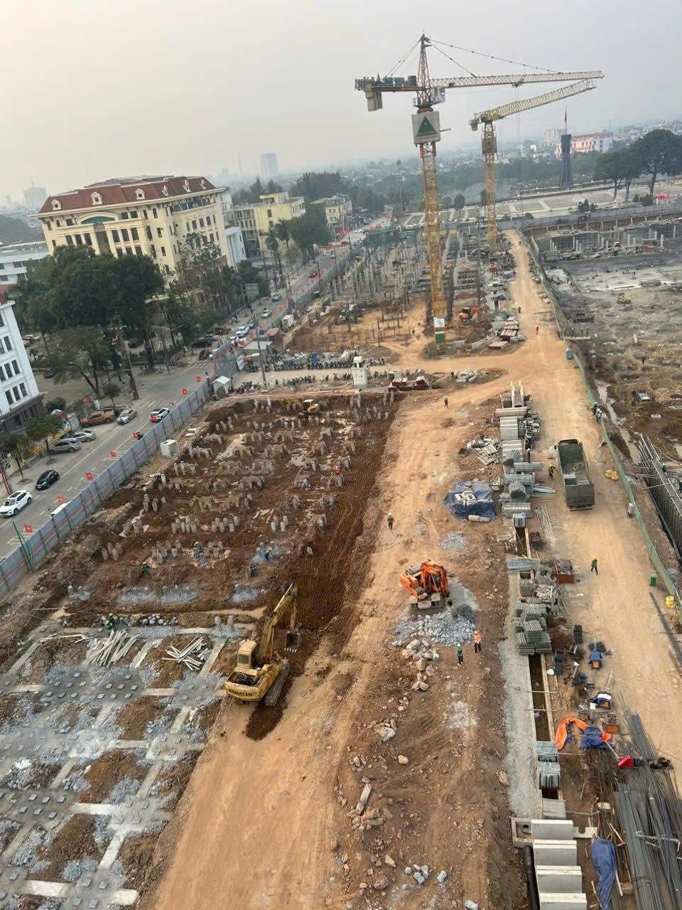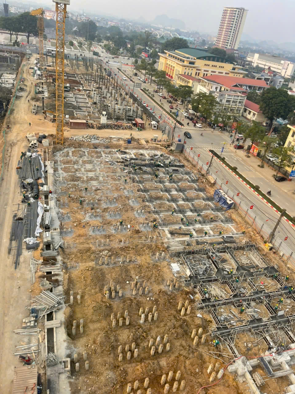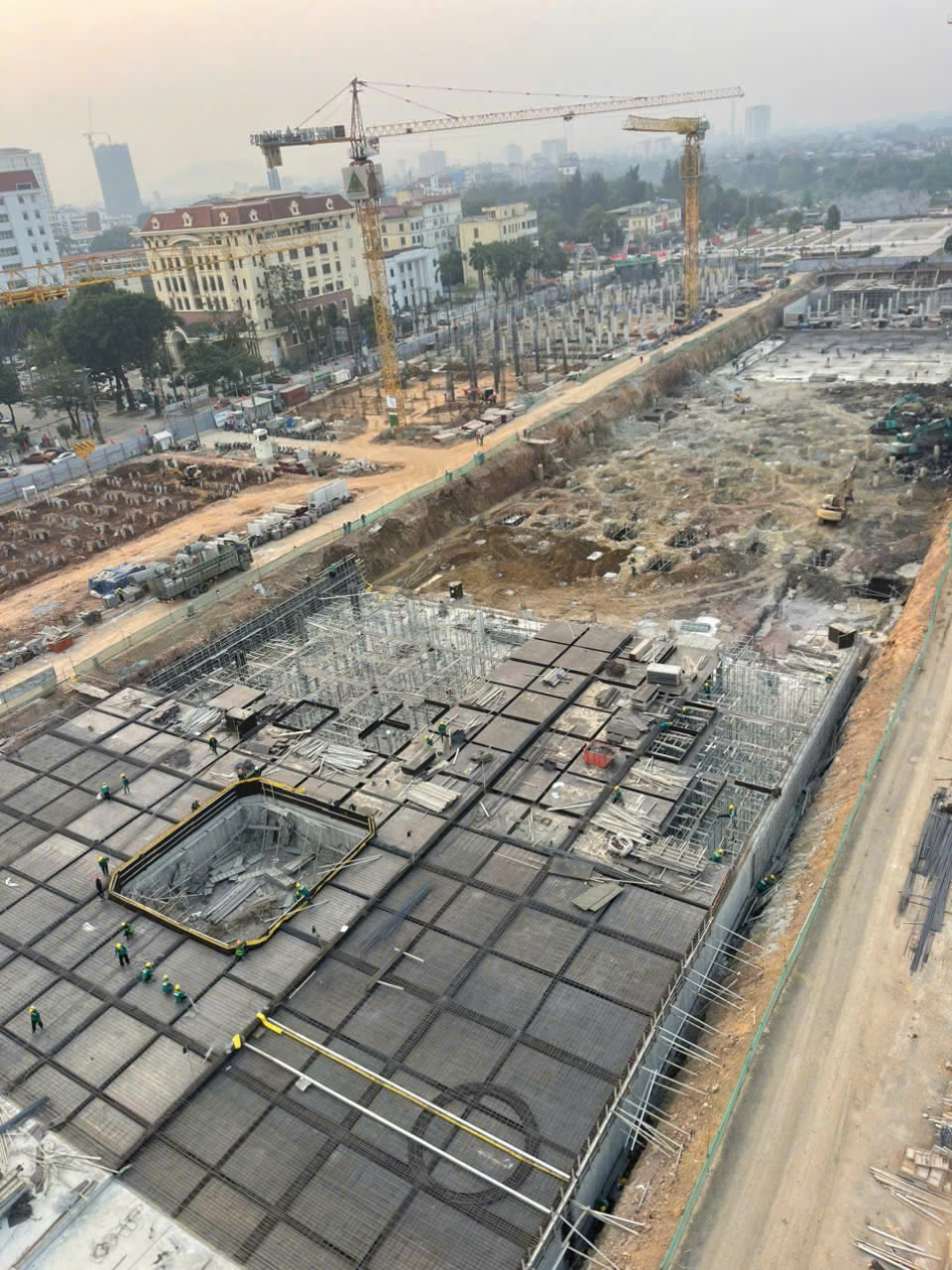 Hiện nay, phần hầm của Dự án đang tập trung thi công đổ bê tông nền và nắp hầm, tổ chức thi công cuốn chiếu theo từng khu vực để sớm hoàn thành khóa nền (dự kiến ngày 12/2.). Song song với đó, khu nhà liền kề thấp tầng đang được đẩy nhanh các hạng mục thi công móng, cột và sàn các tầng đầu để tạo mặt bằng và kết cấu ổn định cho giai đoạn thi công tiếp theo. Công tác thi công bảo đảm nghiêm ngặt các yêu cầu về kỹ thuật, chất lượng và an toàn lao động.