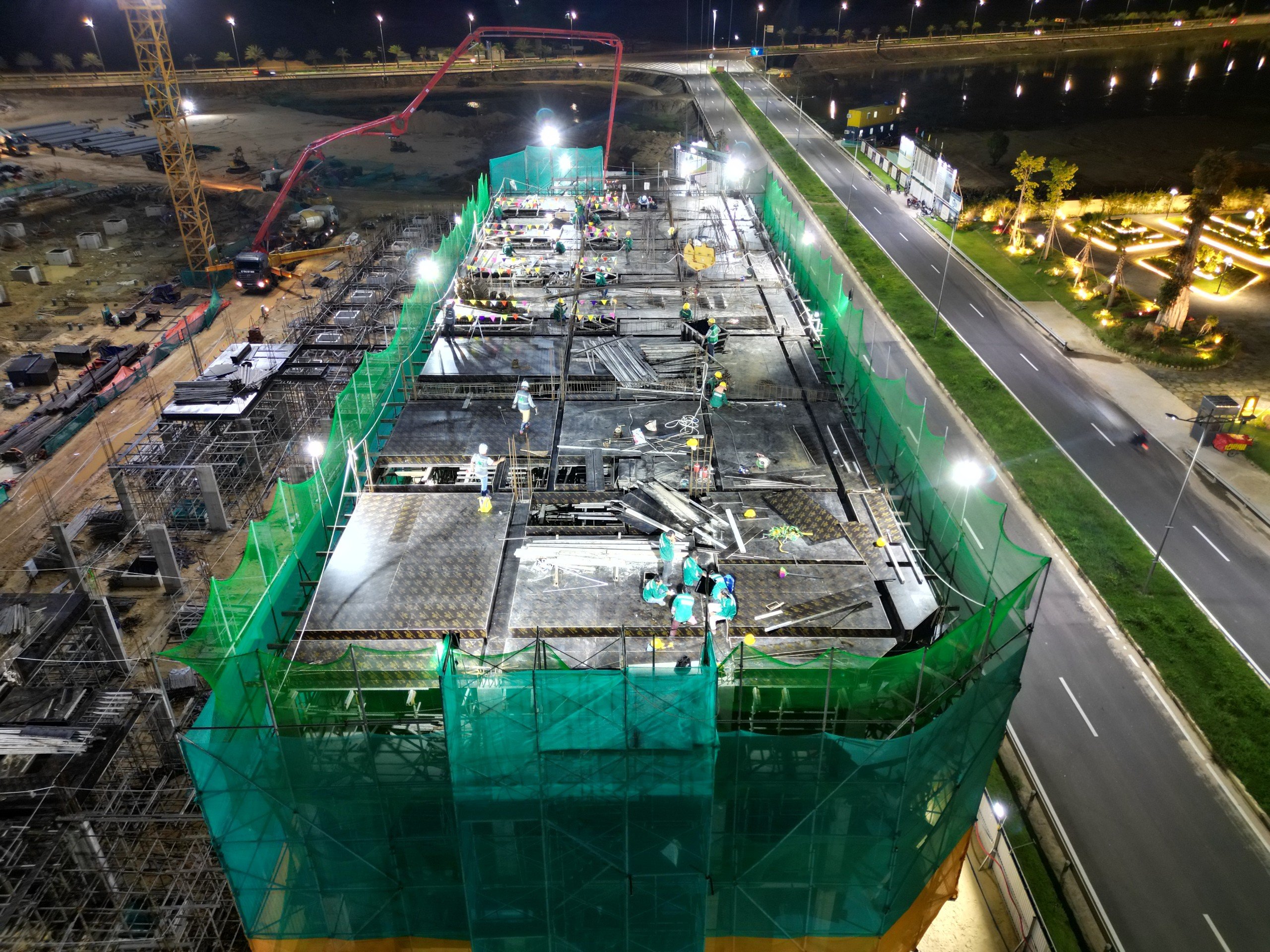 Tăng ca thi công cốp pha dầm sàn tầng 5 Khu hỗn hợp 02A (HH02A)