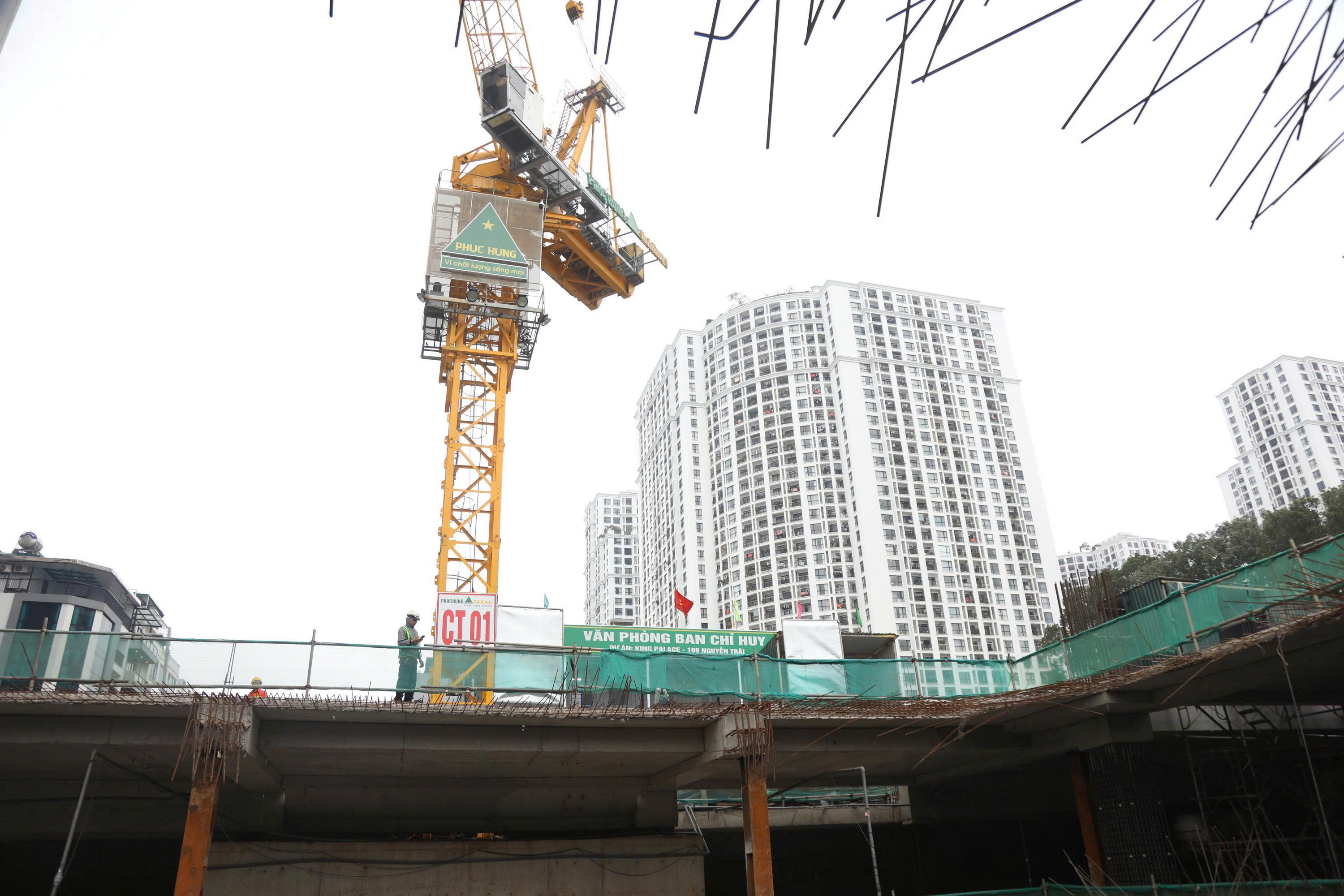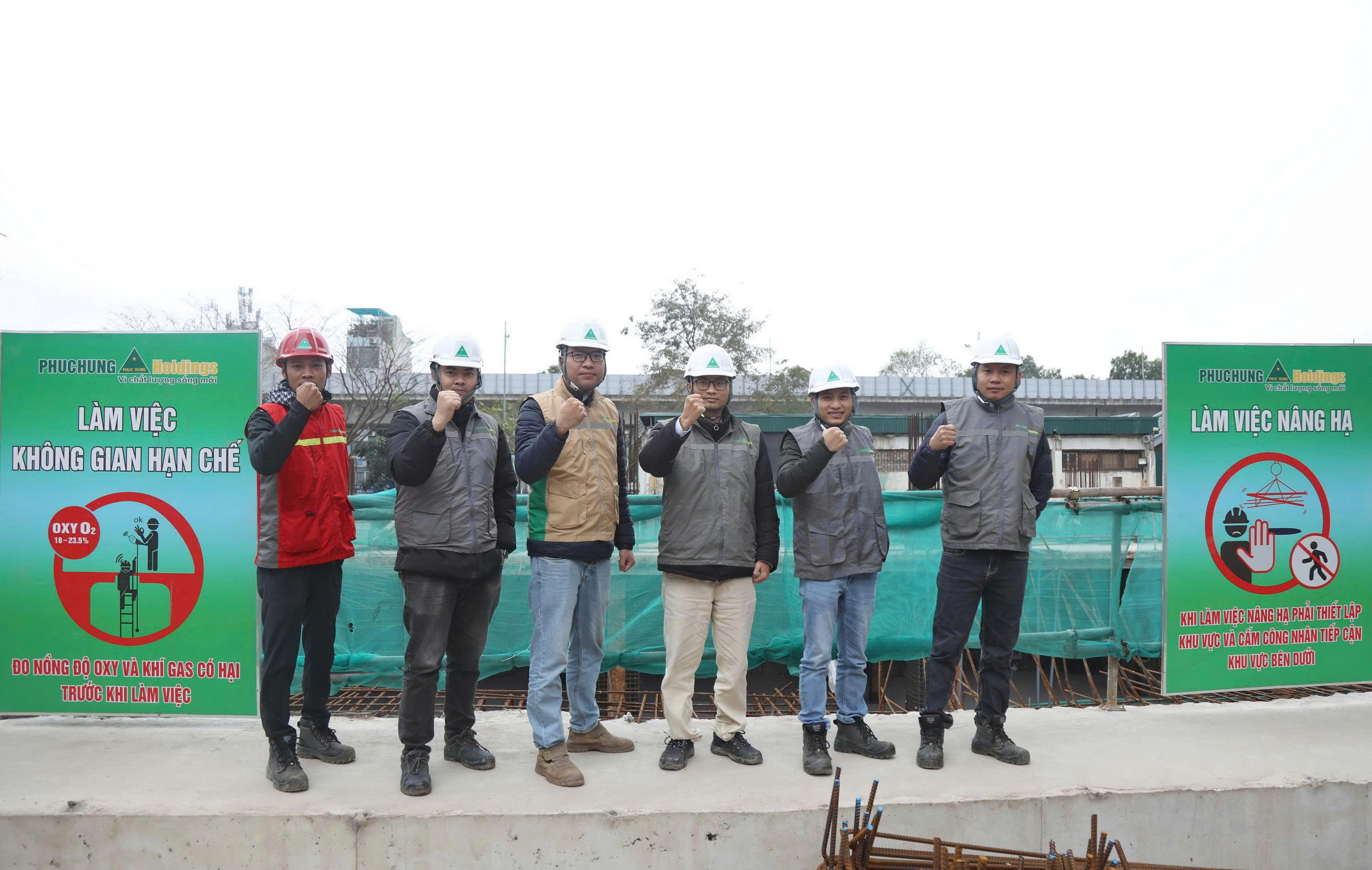 Công nhân Phục Hưng Holdings miệt mài thi công trên công trường