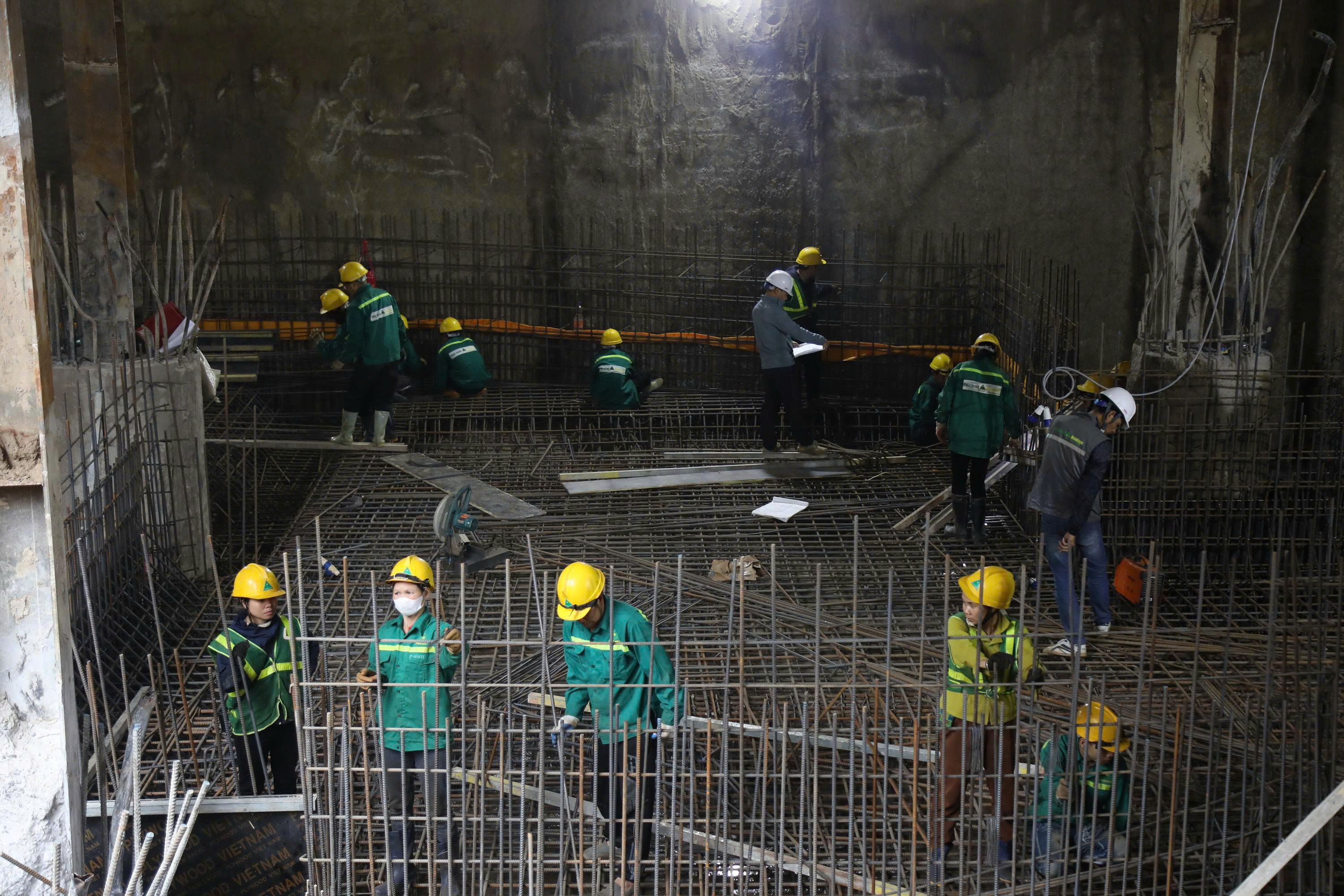 Công tác lắp dựng cốt thép hạng mục phần ngầm được triển khai đồng bộ