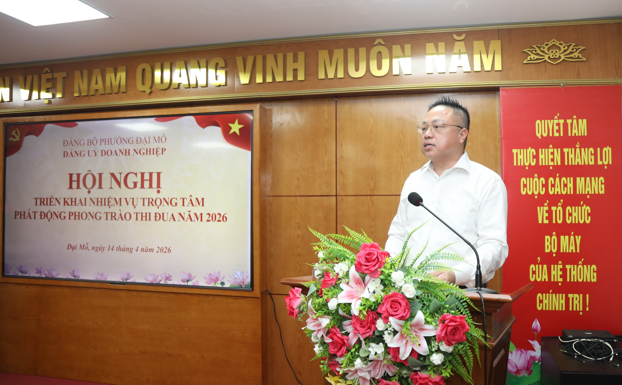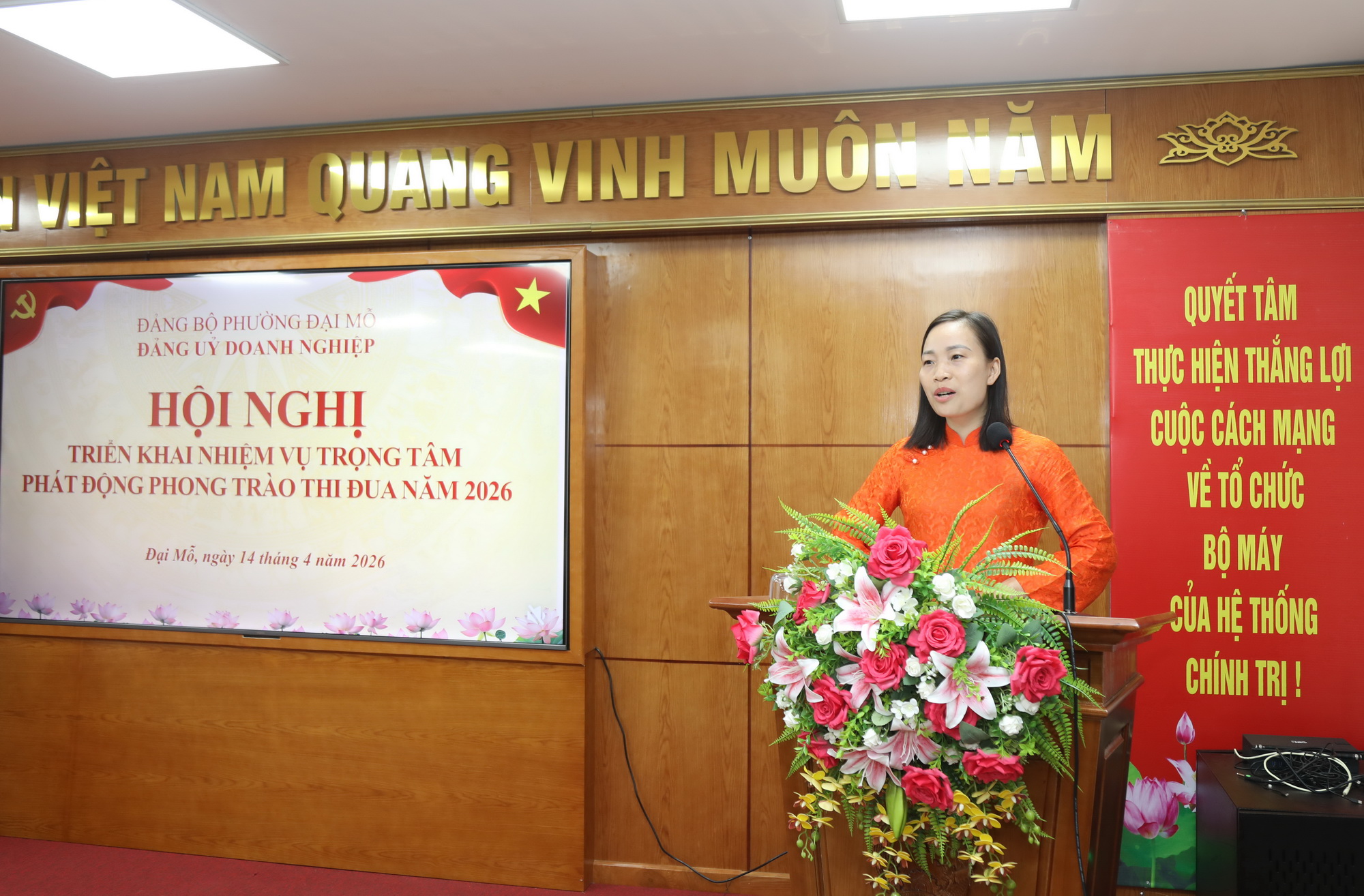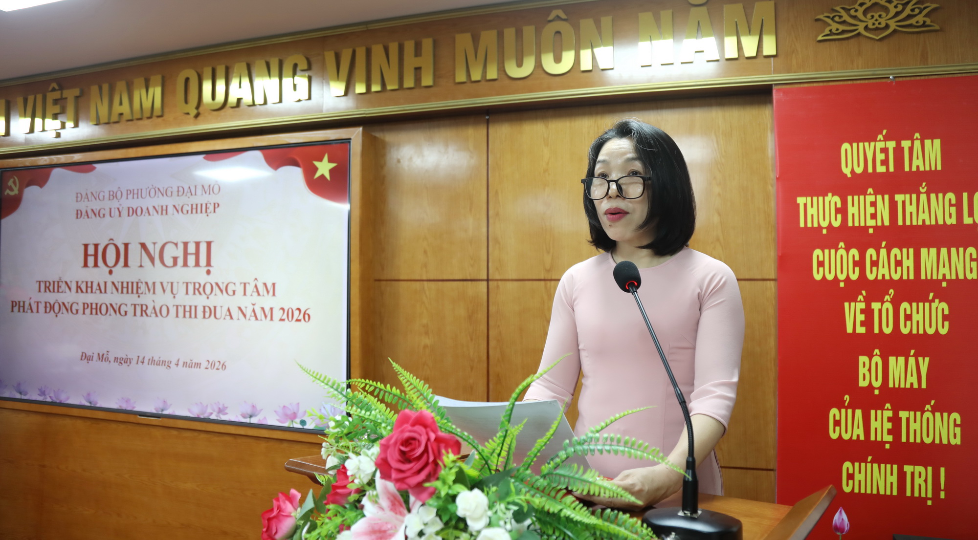 Đồng chí Đỗ Hồng Nhung - Bí thư Đảng ủy Doanh nghiệp phường Đại Mỗ phát động phong trào thi đua năm 2026