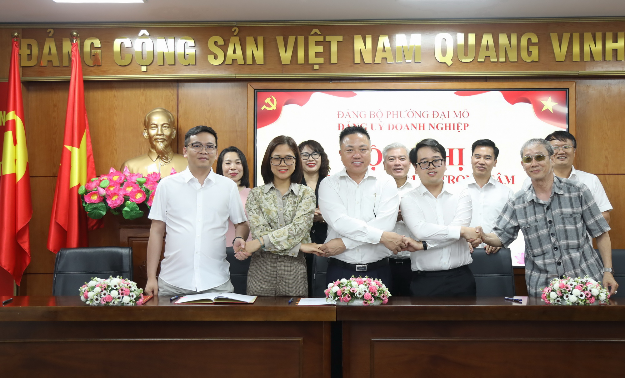 Phát biểu chỉ đạo tại Hội nghị đồng chí Mai Trọng Thái - Bí thư Đảng ủy, Chủ tịch HĐND phường Đại Mỗ ghi nhận và đánh giá cao những nỗ lực của các doanh nghiệp, trong đó có Phục Hưng Holdings trong việc phát huy vai trò lãnh đạo của Đảng gắn với hoạt động sản xuất kinh doanh tại Công ty. Đồng chí chỉ ra 4 nhóm nhiệm vụ trong tâm của Đảng uỷ Doanh nghiệp phường trong công tác xây dựng Đảng, đồng thời, mong muốn các Doanh nghiệp sẽ là hạt nhân chính trị trong công tác xây dựng Đảng và đồng hành trong phát triển, tăng trưởng kinh tế hai con số của phường và Thủ đô