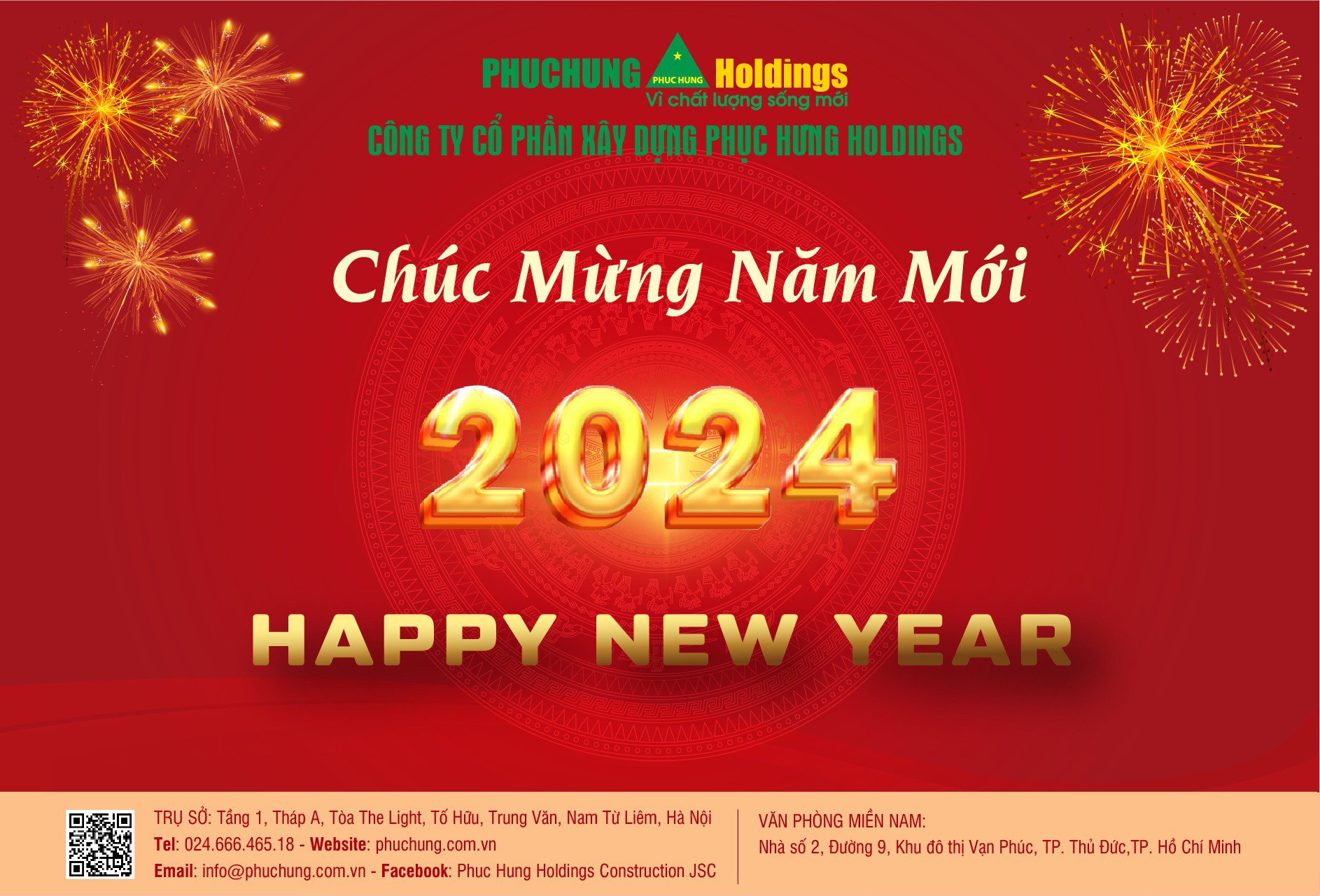 Nhân dịp Năm mới 2024, Công ty Cổ phần Xây dựng Phục Hưng Holdings trân trọng cảm ơn sự gắn kết và kính chúc Quý Đối tác/Bạn hàng, các Nhà thầu phụ & toàn thể cán bộ, công nhân viên, người lao động của Phục Hưng Holdings cùng Gia đình Năm mới 2024 tràn đầy Sức khỏe, Vạn sự như ý, đong đầy Niềm vui và Thành công! Happy New Year!