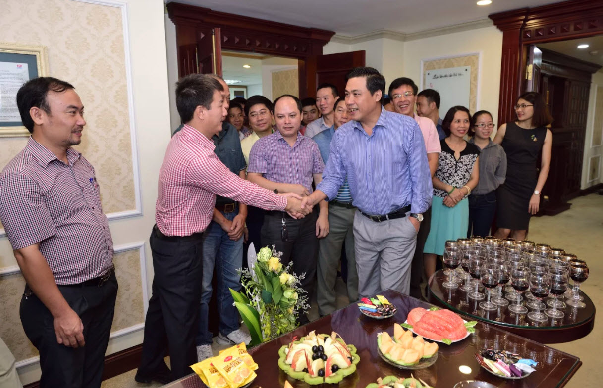 Chỉ huy trưởng các công trình chúc mừng Chủ tịch HĐQT Cao Tùng Lâm (đứng giữa)