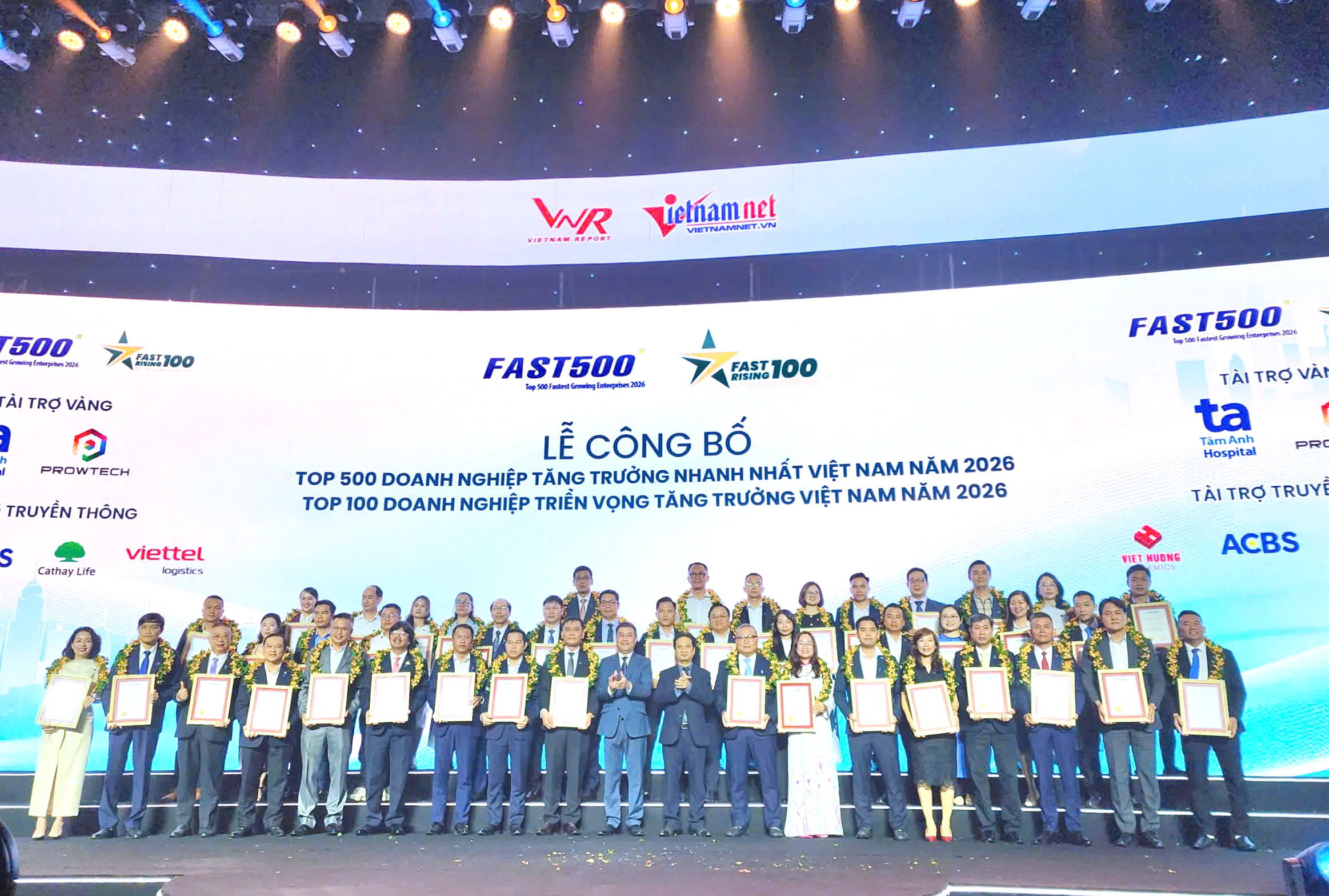 FAST500 là Bảng xếp hạng do Vietnam Report phối hợp cùng VietNamNet công bố, dựa trên các tiêu chí như: tốc độ tăng trưởng doanh thu, hiệu quả kinh doanh, chấp hành tuân thủ tốt luật pháp & chính sách Nhà nước, nhằm tôn vinh những doanh nghiệp có năng lực tăng trưởng bền vững và bản lĩnh thích ứng vượt trội.