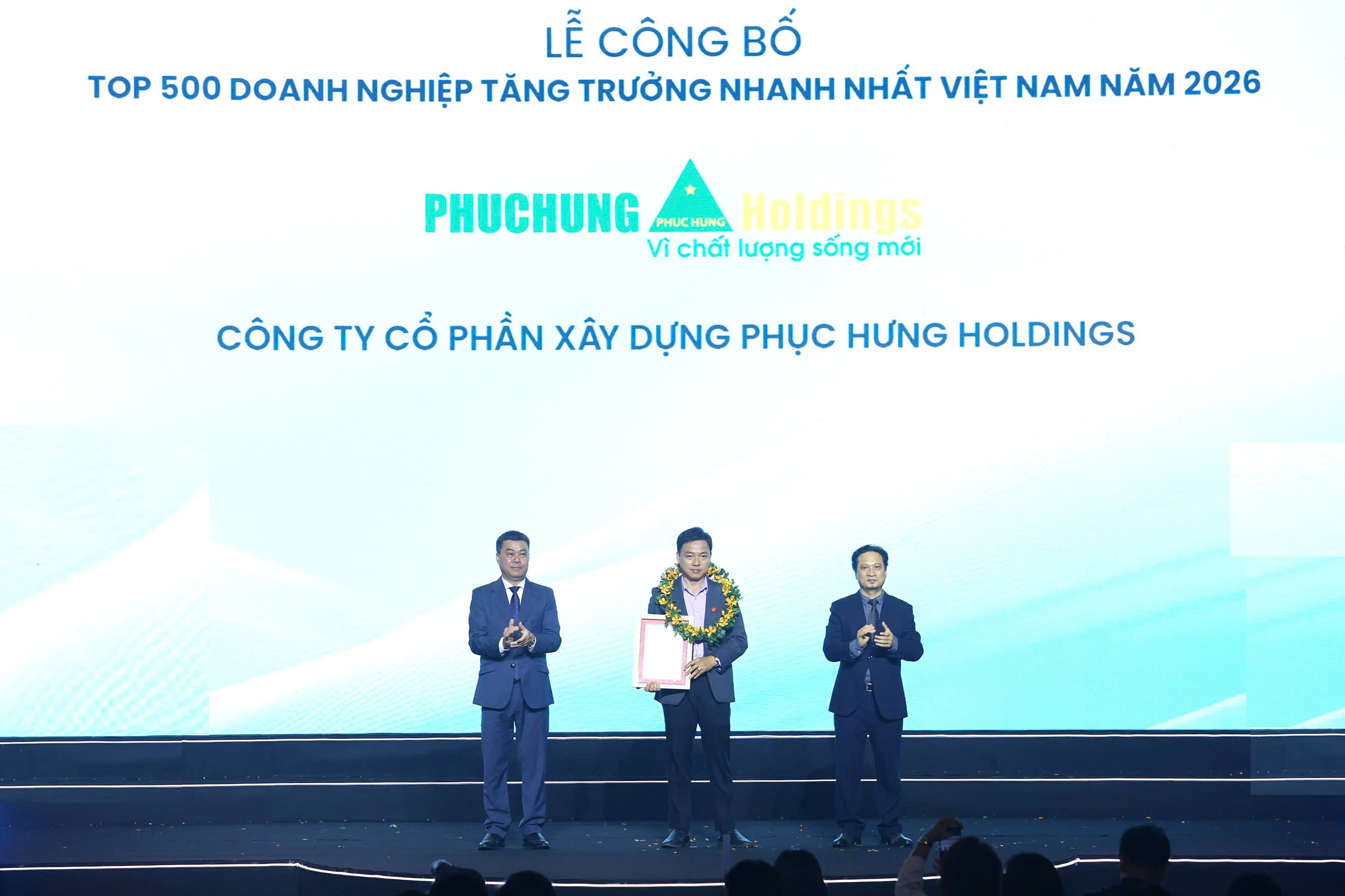 Ngày 22/04/2026, Công ty Cổ phần Xây dựng Phục Hưng Holdings vinh dự được xướng tên trong Bảng xếp hạng Top 500 Doanh nghiệp tăng trưởng nhanh nhất Việt Nam năm 2026 (FAST500) trong lĩnh vực Xây dựng.