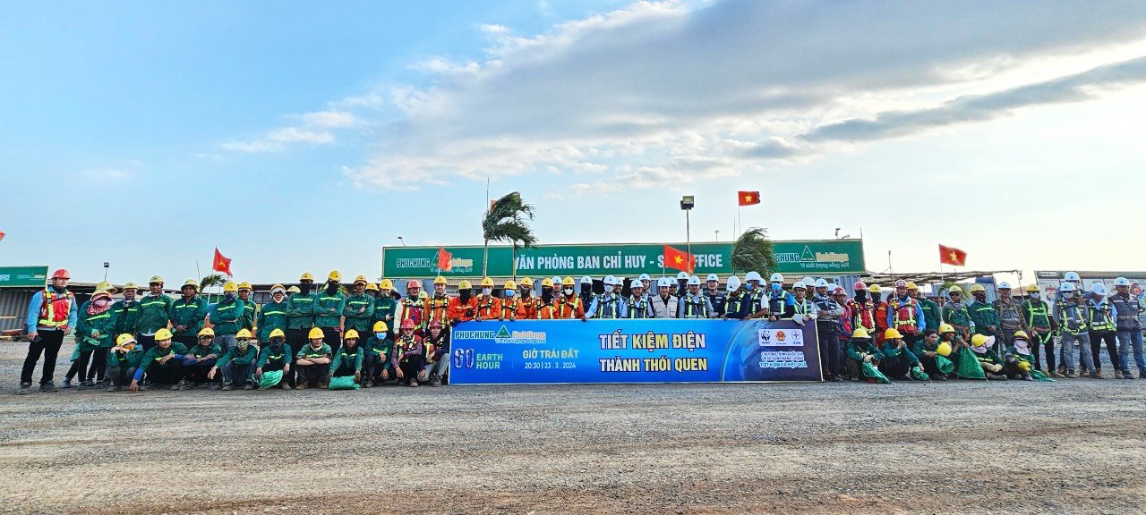 Ban chỉ huy Công trường Nhà ga hành khách sân bay Long Thành hưởng ứng chiến dịch Giờ Trái đất năm 2024