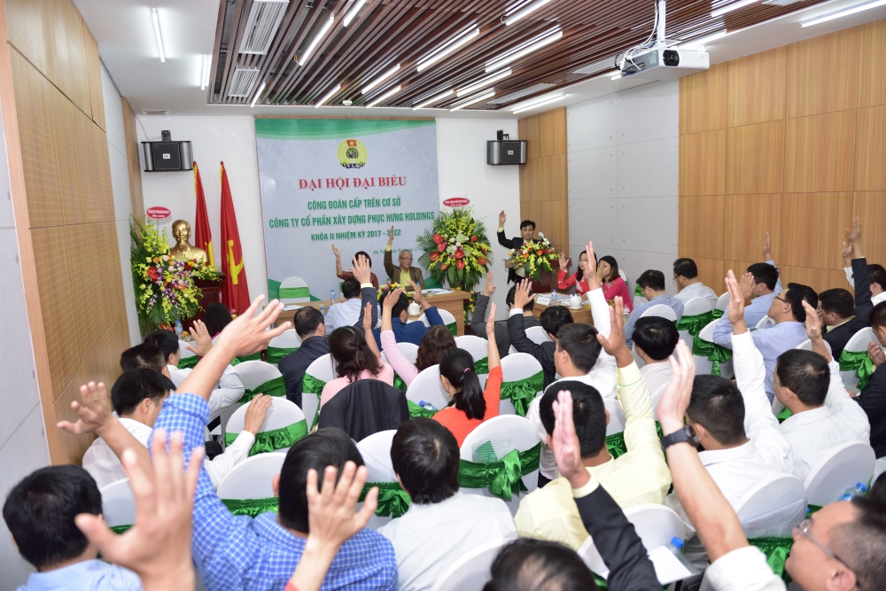 Toàn thể đoàn viên công đoàn công ty phát huy dân chủ, đoàn kết tập trung trí tuệ, năng động, sáng tạo, nêu cao tinh thần trách nhiệm, vượt qua khó khăn, thử thách hoàn thành kế hoạch sản xuất kinh doanh, đảm bảo việc làm, thu nhập, nâng cao đời sống vật chất, tinh thần cho người lao động góp phần thúc đẩy Công ty ngày càng phát triển, cùng với sự quan tâm chỉ đạo của Đảng uỷ Công ty cũng như sự phối hợp, tạo điều kiện chuyên môn của đội ngũ cán bộ đoàn viên Công đoàn Công ty cổ phần Xây dựng Phục Hưng Hodings quyết tâm thực hiện thắng lợi Nghị quyết Đại hội Công đoàn lần thứ II, nhiệm kỳ 2017 - 2022 đã đề ra.
