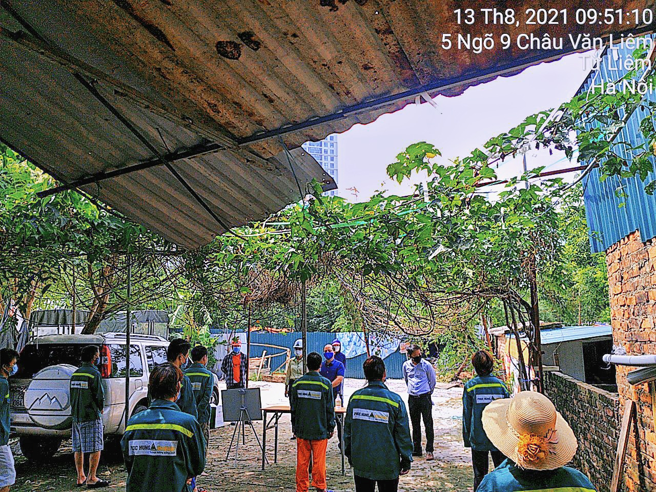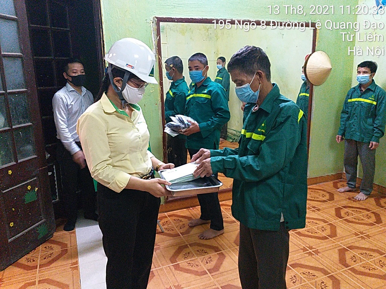 Bà Tô Thị Hồng Điệp-Chủ tịch Công đoàn khối Văn phòng đi kiểm tra công tác phòng/chống dịch tại các khu lán trại của công nhân thuộc dự án Mỹ Đình Pearl đồng thời trao quà hỗ trợ tiền ăn cho người lao động trong thời gian giãn cách.