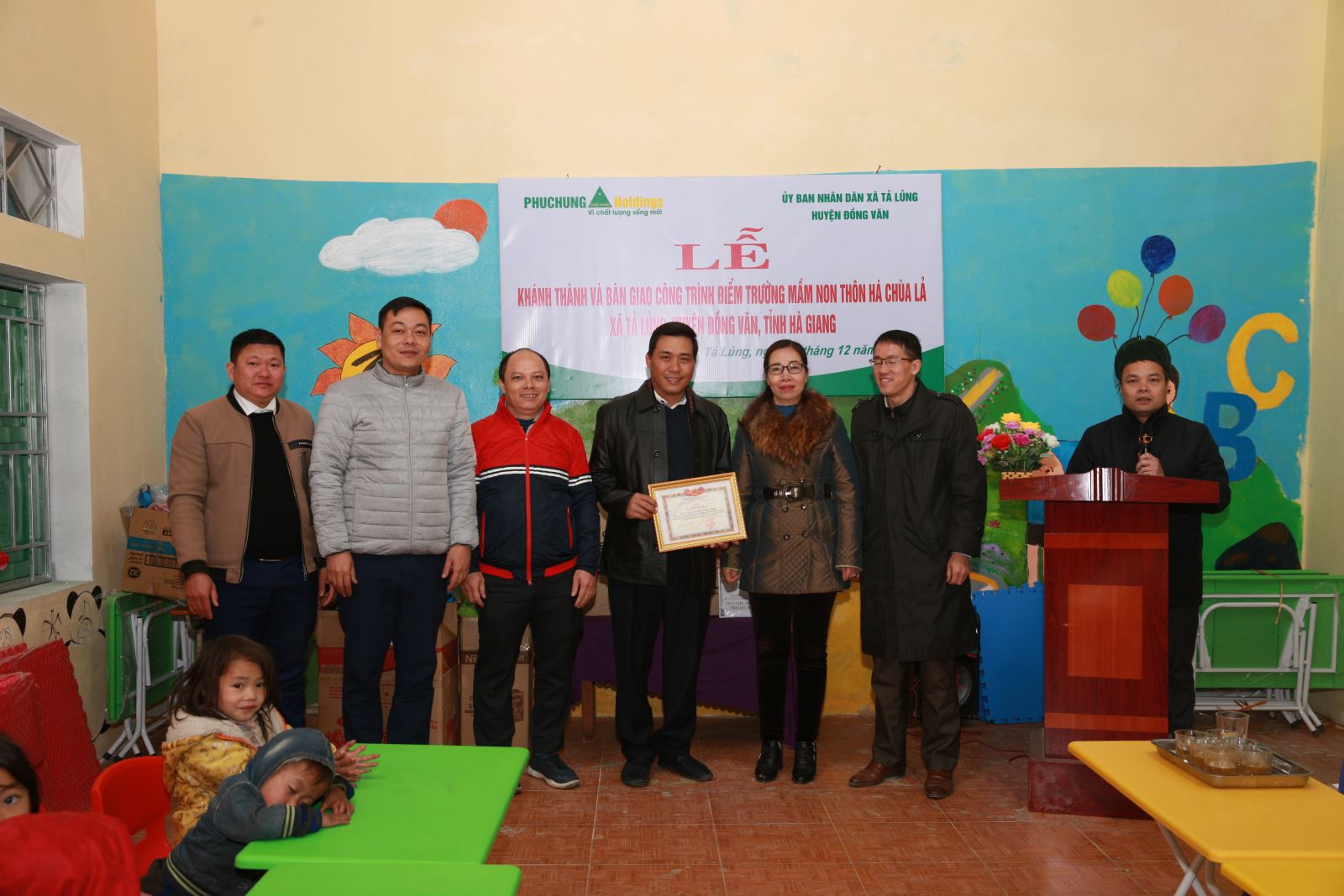 Trong chuyến công tác ngày 04/12/2020, Công ty Cổ phần Xây dựng Phục Hưng Holdings cùng với UBND huyện Đồng Văn, UBND xã Tả Lủng đã tổ chức Khánh thành và bàn giao điểm trường mầm non thôn Há Chúa Lả, xã Tả Lủng. Đây là địa phương với hầu hết là bà con dân tộc H Mông, trong đó 70% là hộ nghèo, trẻ em độ tuổi mầm non không biết tiếng Kinh, điều kiện cơ sở vật chất hết sức khó khăn. Thấu hiểu những khó khăn đó, với tinh thần chung tay chia sẻ cùng cộng đồng, Phục Hưng Holdings đã tài trợ và xây dựng điểm trường thông Há Chúa Lả với kinh phí hơn 400 triệu đồng bao gồm một nhà lớp học 5 gian cùng sân chơi, khuôn viên hoàn chỉnh. Sau hơn 2 tháng thi công, đến nay công trình đã hoàn thành, sẵn sàng đưa vào sử dụng nhằm đem lại niềm vui , giảm bớt phần nào khó khăn cho cô và trò nơi đây.