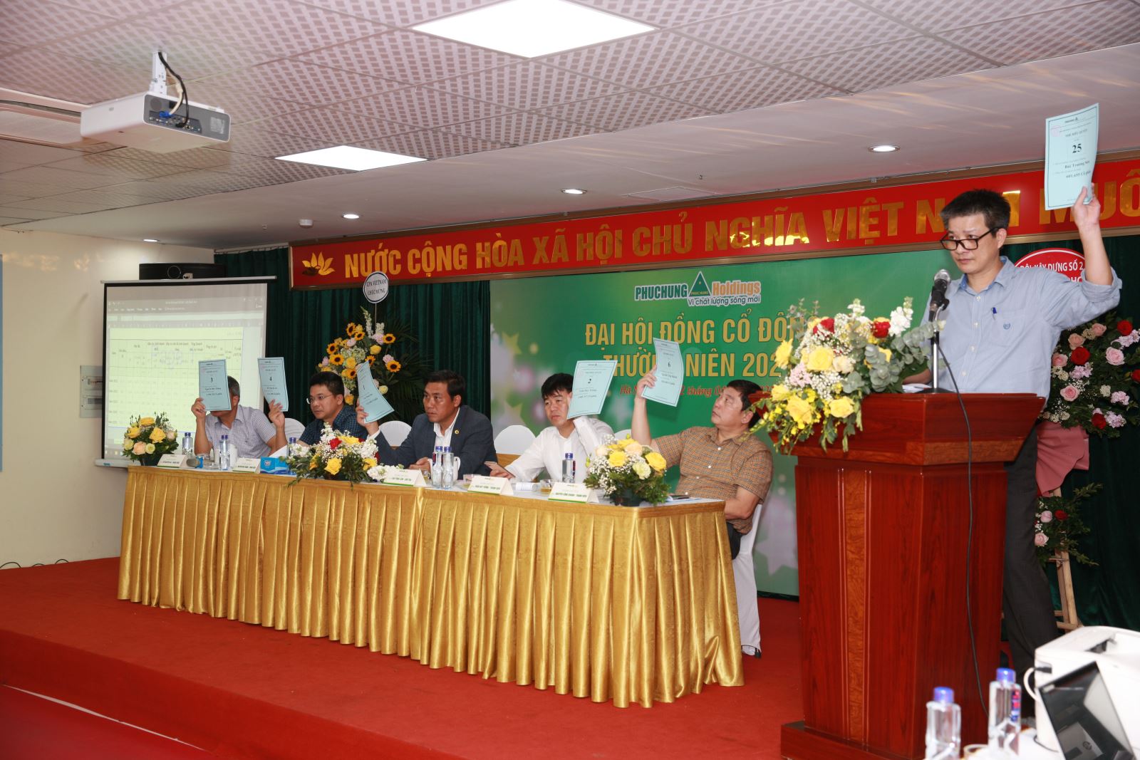 Các cổ đông biểu quyết thông qua các nội dung tại Đại hội