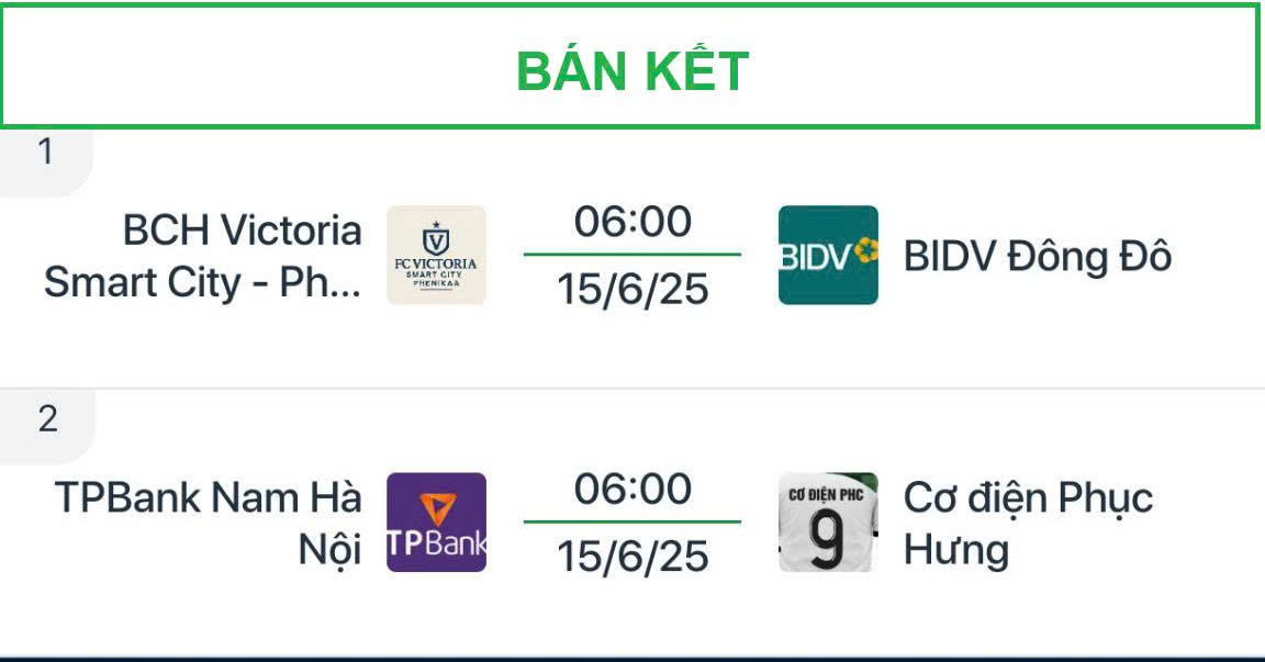 Lịch thi đấu bán kết Cup Phục Hưng Holdings mở rộng năm 2025