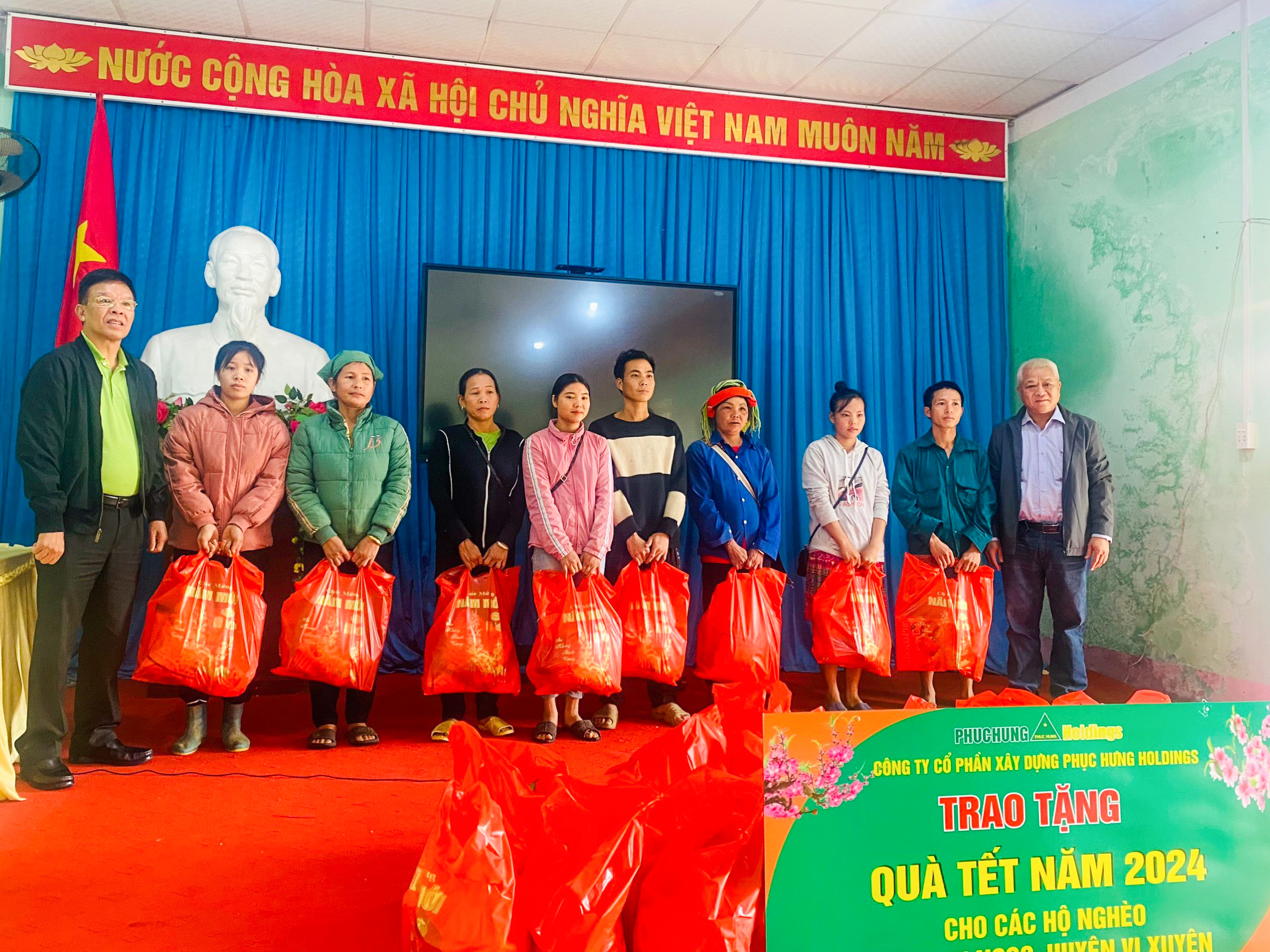 Trong 02 ngày, đoàn công tác Phục Hưng Holdings đã thăm, trao tặng 110 suất quà trị giá 55 triệu đồng cho các gia đình chính sách, các hộ nghèo, người khuyết tật, gia đình chính sách, nạn nhân chất độc da cam/Dioxin tại huyện Vị Xuyên; Trao 80 suất quà là chăn ấm và đệm trị giá 28 triệu đồng cho các cháu học sinh bán trú xã Niêm Sơn, huyện Mèo Vạc.