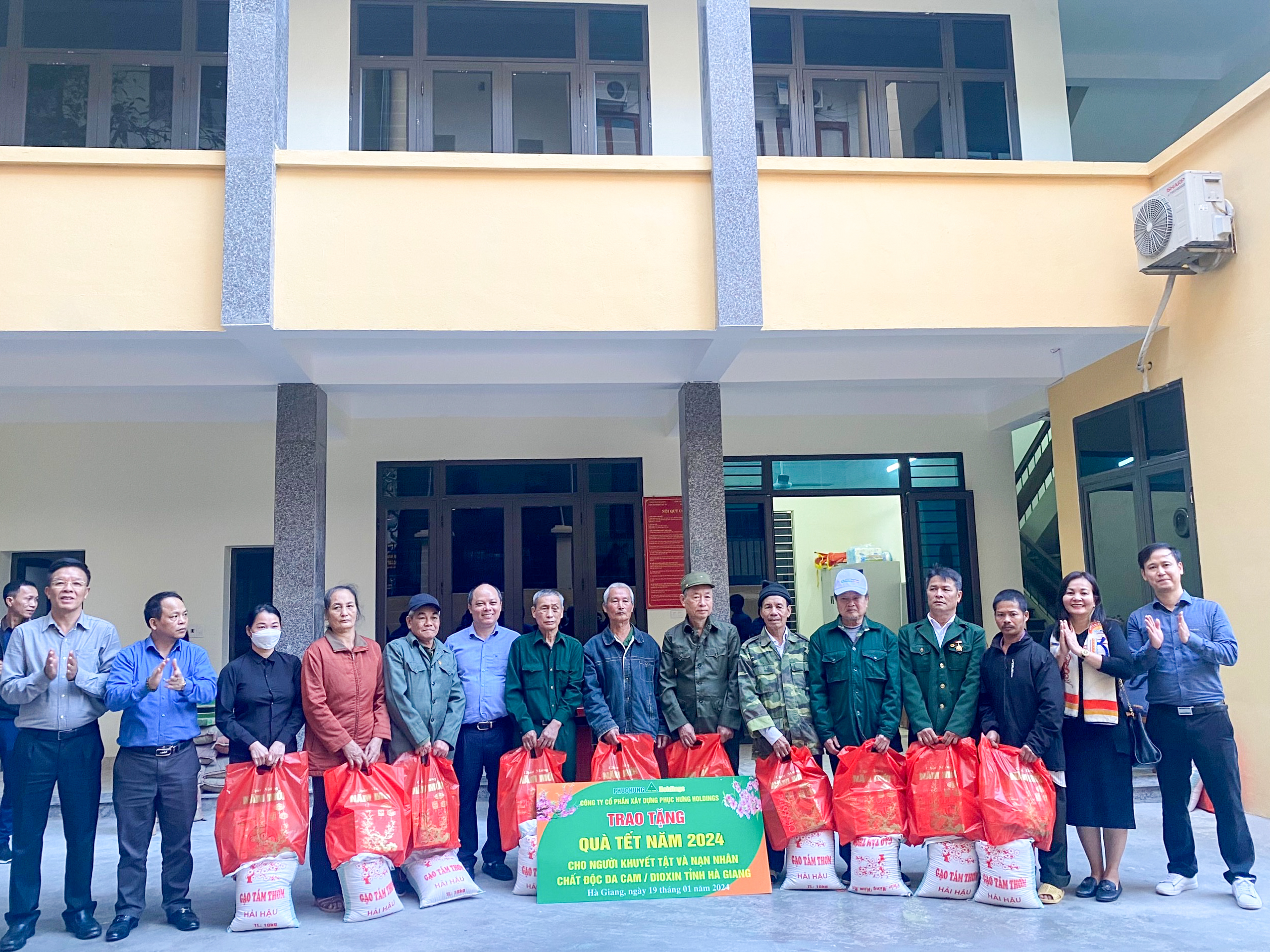 Đoàn công tác đã trao tặng quà cho người khuyết tật, nạn nhân chất độc da cam/Dioxin của huyện Vị Xuyên