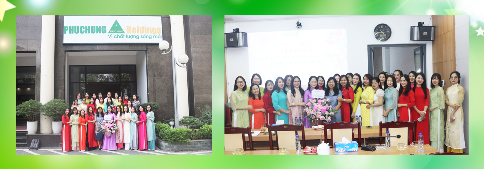 Nữ đoàn viên công đoàn Phục Hưng Holdings chụp ảnh kỷ niệm