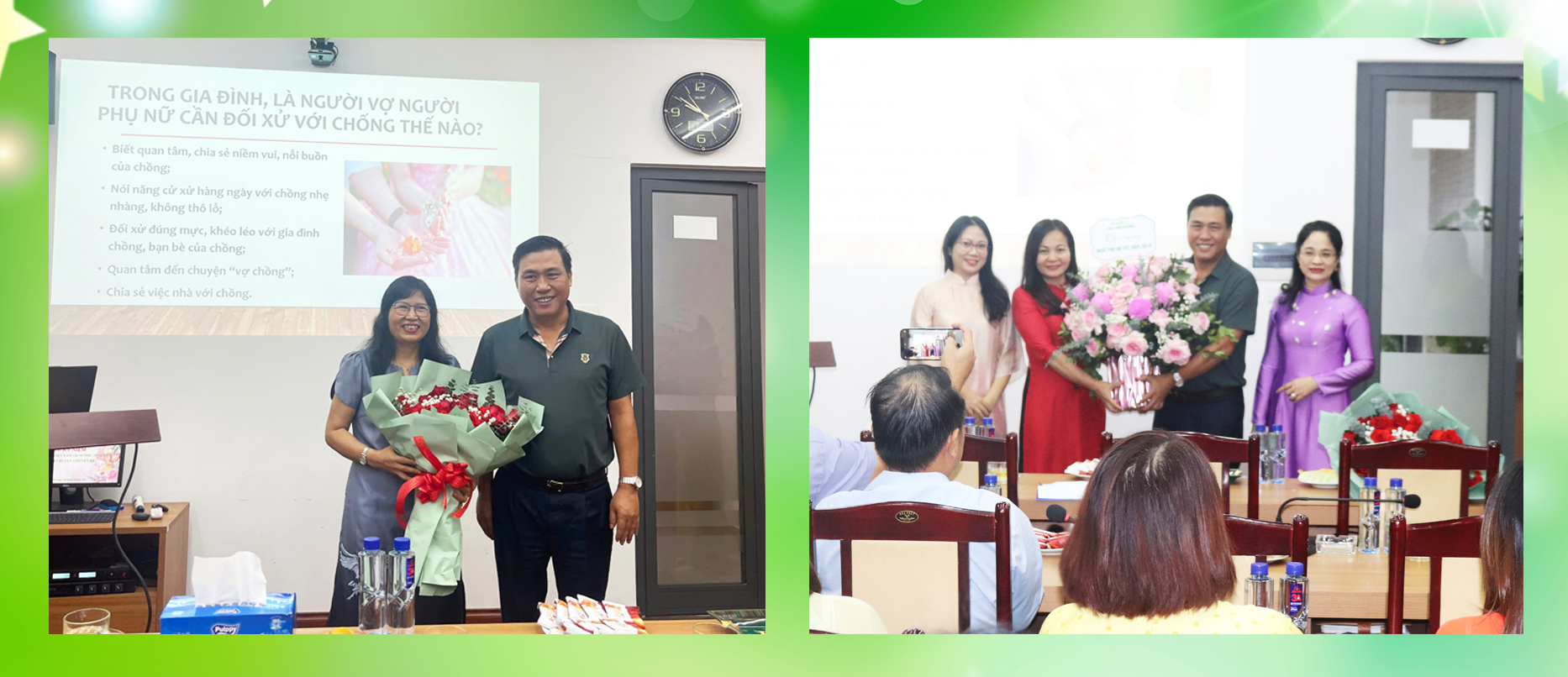 Chủ tịch HĐQT Cao Tùng Lâm tặng hoa chúc mừng Diễn giả PGS.TS. Dương Tuyết Miên và đại diện nữ đoàn viên công đoàn Phục Hưng Holdings