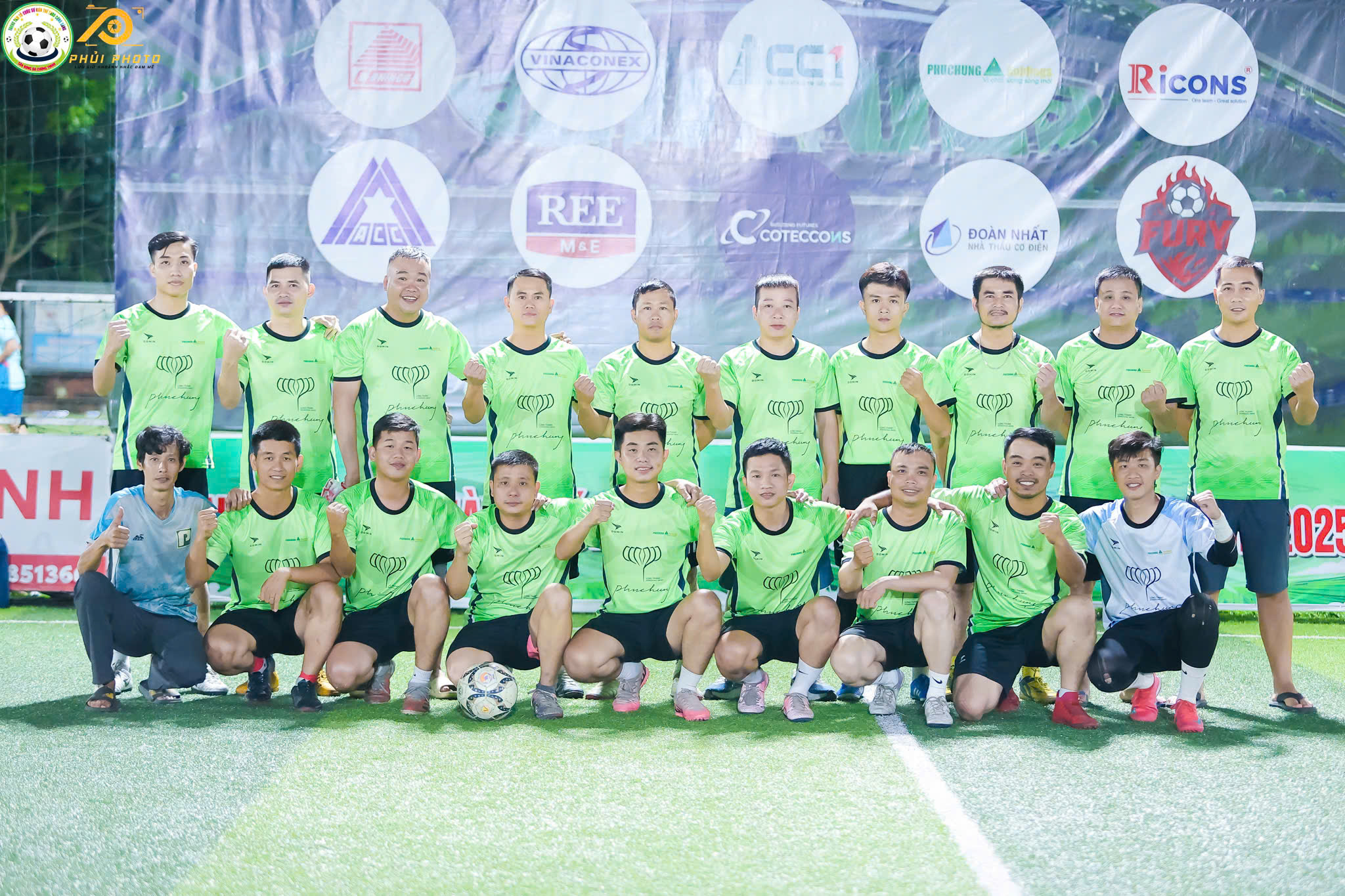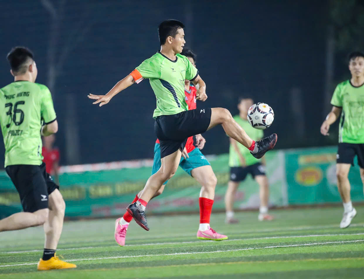 Không chỉ cống hiến hết mình trên công trường, các cầu thủ Phục Hưng Holdings còn cháy rực nhiệt huyết trên sân cỏ tại giải.