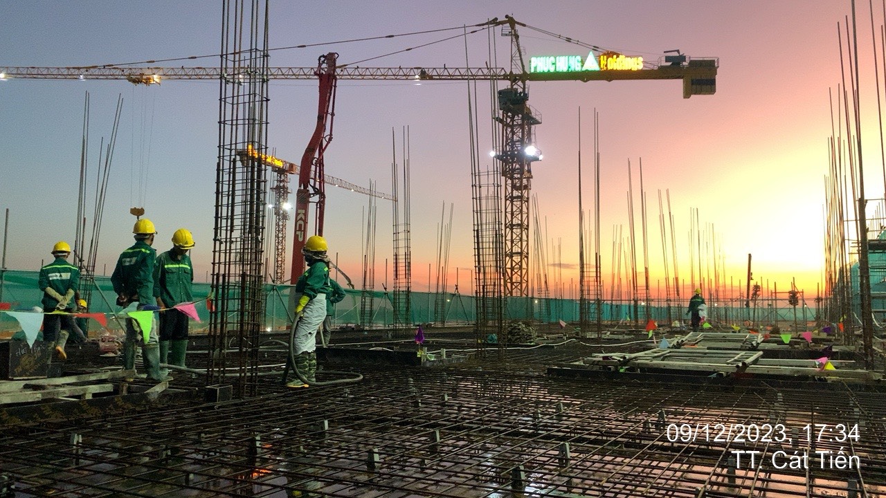 Giải Nhất tuần 50/2023: “Chiều tà” của tác giả Hoàng Hữu Sơn – Cán bộ An toàn Ban Chỉ huy công trường Imperial Oasis Quy Nhơn - Công trình Imperial Oasis Quy Nhơn được ghi lại từ xa; Công trường đang thắp đèn tăng ca buộc sắt để nghiệm thu đổ bê tông sàn tầng 3 lô Liền kề 03A và lô Liền kề 02A