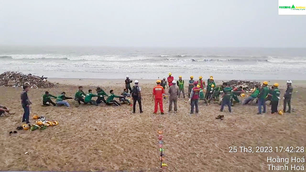Tại Ban chỉ huy Công trường Flamingo Linh Trường - Hải Tiến các kỹ sư, nhân viên, người lao động chung tay nhặt rác làm sạch môi trường biển dọc hơn 300m bờ biển Linh Trường, xã Hoằng Trường, Hải Tiến, Thanh Hóa nhằm hưởng ứng Giờ Trái đất năm 2023.