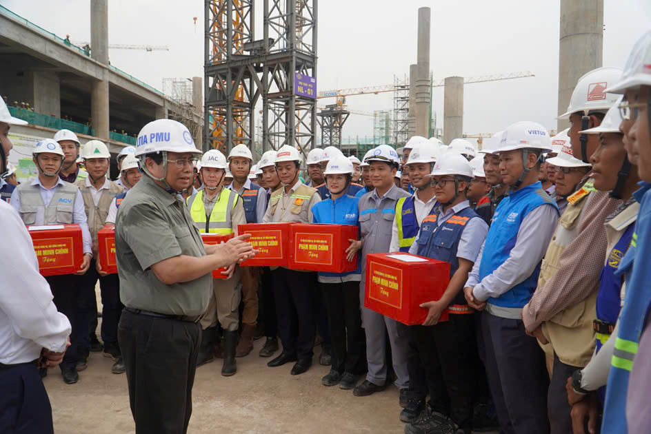 Thủ tướng Chính phủ Phạm Minh Chính đến thăm công trường, động viên, tiếp thêm sức mạnh cho kỹ sư, người lao động