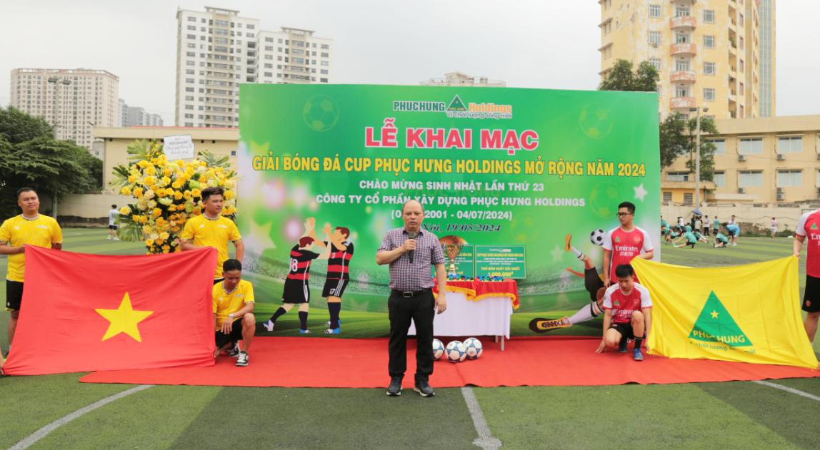 Ông Trần Thắng Lợi – Chủ tịch Công đoàn cấp trên cơ sở kiêm Phó TGĐ Phục Hưng Holdings tuyên bố khai mạc Giải bóng đá Cup Phục Hưng Holdings mở rộng năm 2024