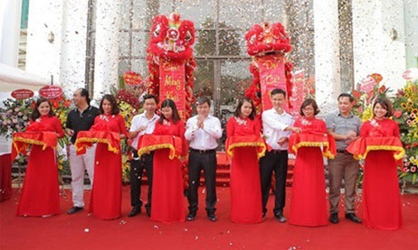 Đại diện chủ đầu tư cắt băng khánh thành khai trương nhà mẫu