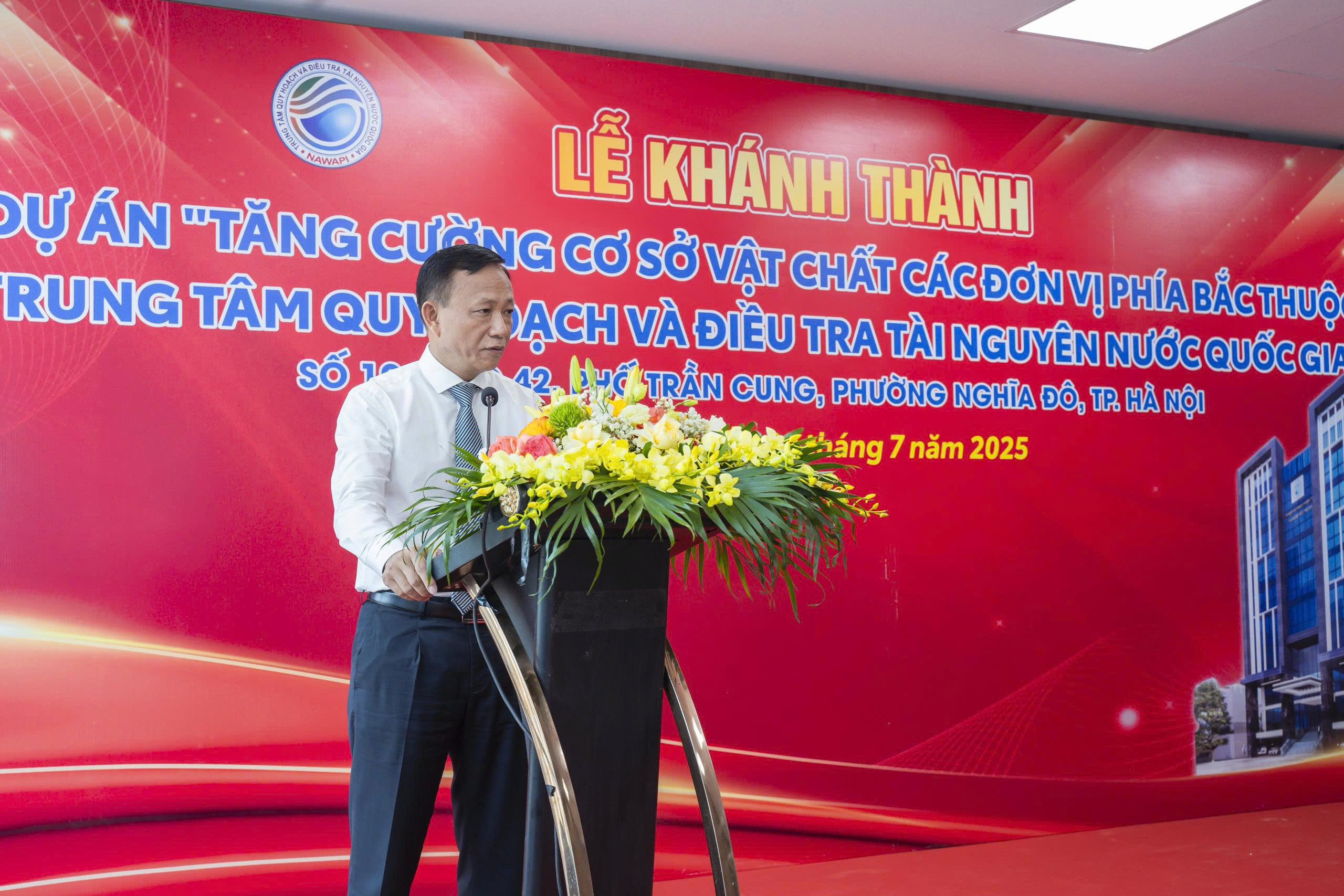 Phát biểu tại buổi lễ, ông Tống Ngọc Thanh - Tổng Giám đốc Trung tâm Quy hoạch và Điều tra tài nguyên nước quốc gia nhấn mạnh: "Công trình là một điểm nhấn kỹ thuật, nền tảng cho cuộc cách mạng chuyển đổi số dữ liệu điều tra cơ bản, quy hoạch tài nguyên nước, phục vụ công tác cảnh báo sớm, quản lý rủi ro và ra quyết định theo hướng chủ động", đồng thời, ghi nhận những nỗ lực, cố gắng của liên danh các nhà thầu cũng như các đơn vị thiết kế, thi công, giám sát để đưa dự án về đích thành công, chất lượng và an toàn, đúng tiến độ.