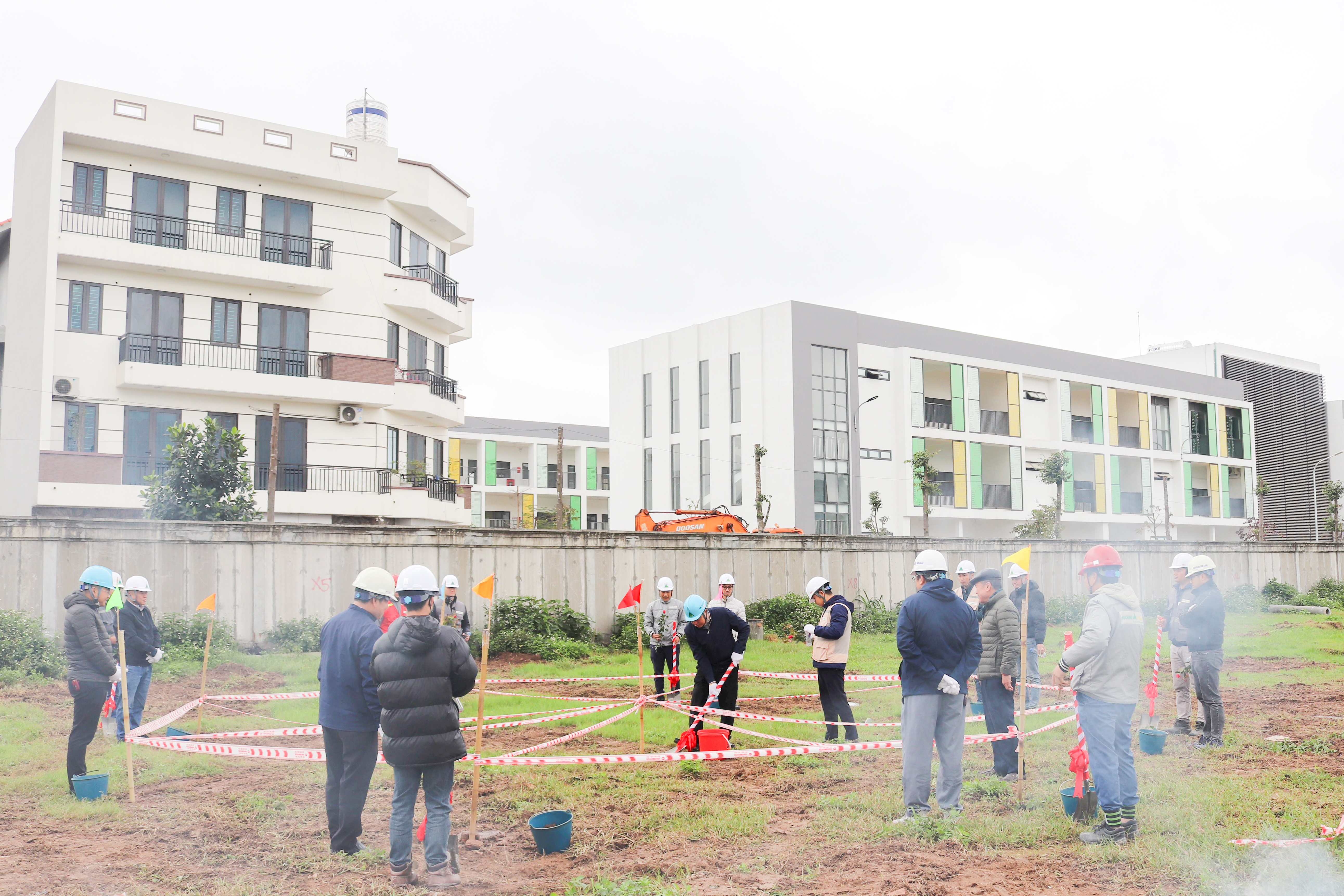 Đại diện Ban quản lý Dự án Vân Canh, Tư vấn giám sát và Nhà thầu chính Phục Hưng Holdings tiến hành nghi thức động thổ