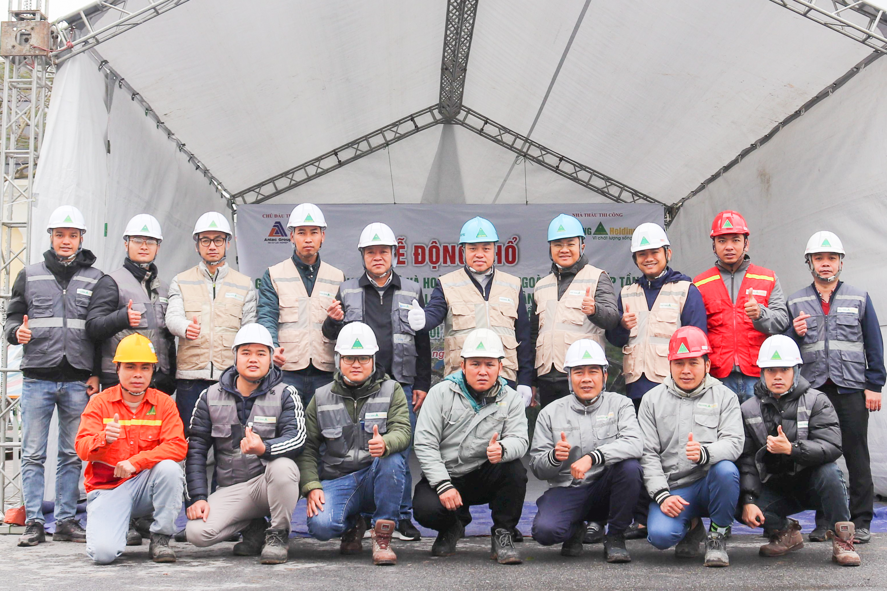 Thành viên HĐQT kiêm Tổng giám đốc Trần Hồng Phúc cùng Ban chỉ huy công trường chụp hình lưu niệm tại Lễ động thổ