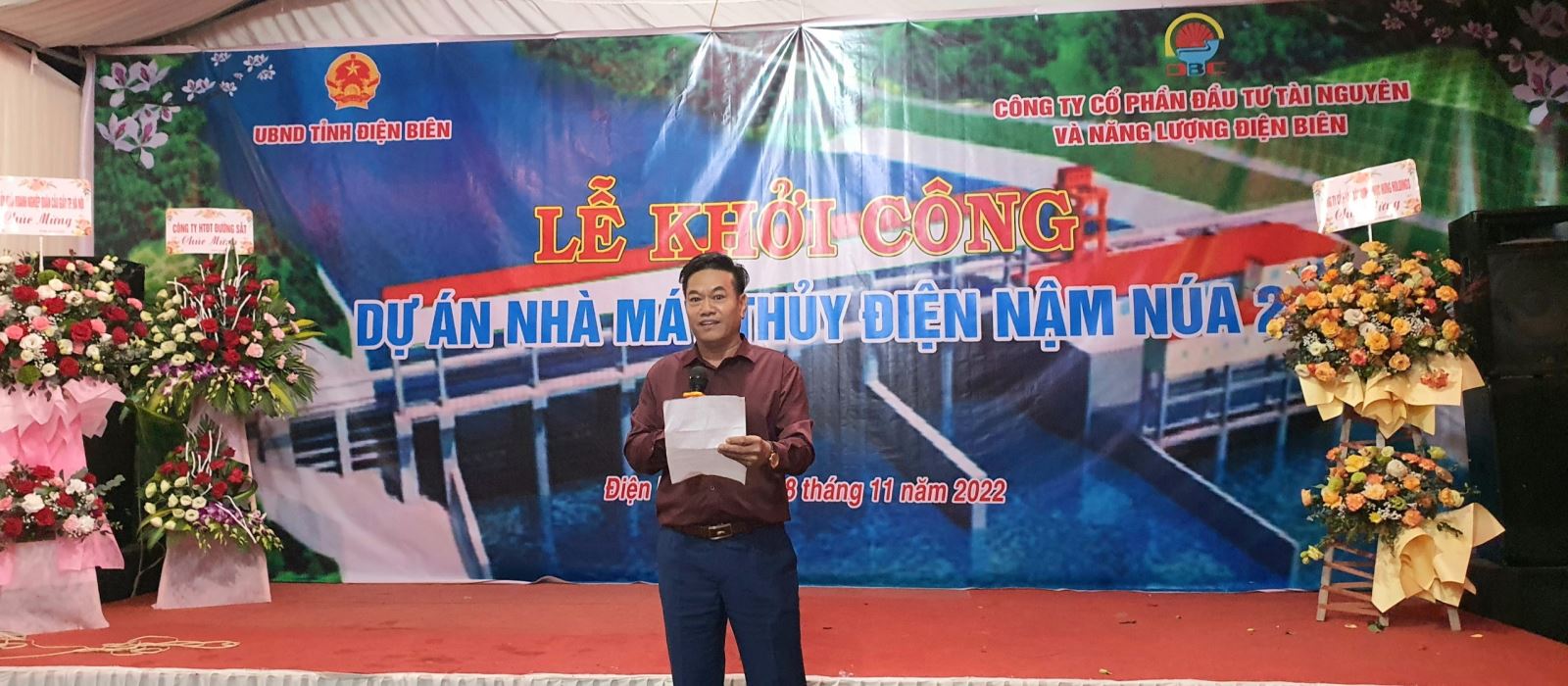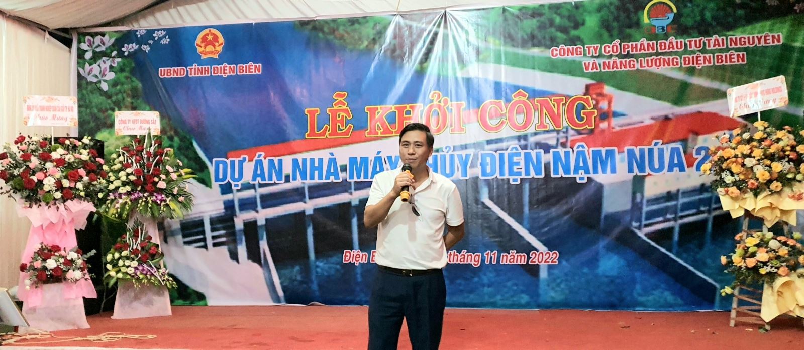 Ông Nguyễn Đặng Tuấn - Chủ tịch HĐQT Công ty CP Đầu tư Tài nguyên và Năng lượng Điện Biên phát biểu tại lễ khởi công