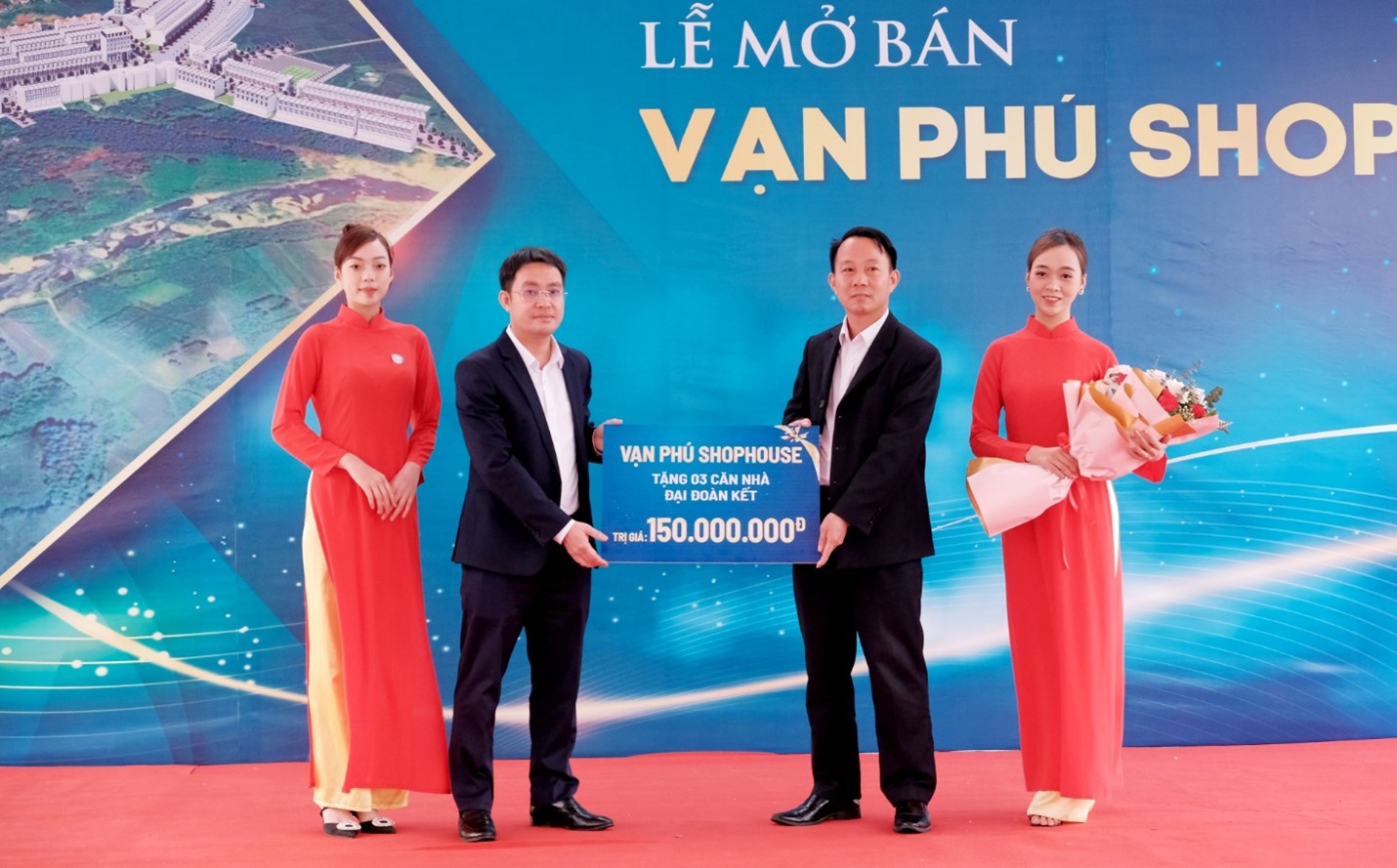 Nhân dịp này, chủ đầu tư Dự án đã trao tặng xã Ký Phú 150 triệu đồng để hỗ trợ xây dựng 3 ngôi nhà Đại đoàn kết trên địa bàn. Đồng thời, tổ chức chương trình bốc thăm trúng thưởng cho các chủ nhân khu shophouse ở đây cùng các đại biểu tham gia buổi lễ, với nhiều giải thưởng giá trị như xe máy Vision, máy giặt,…