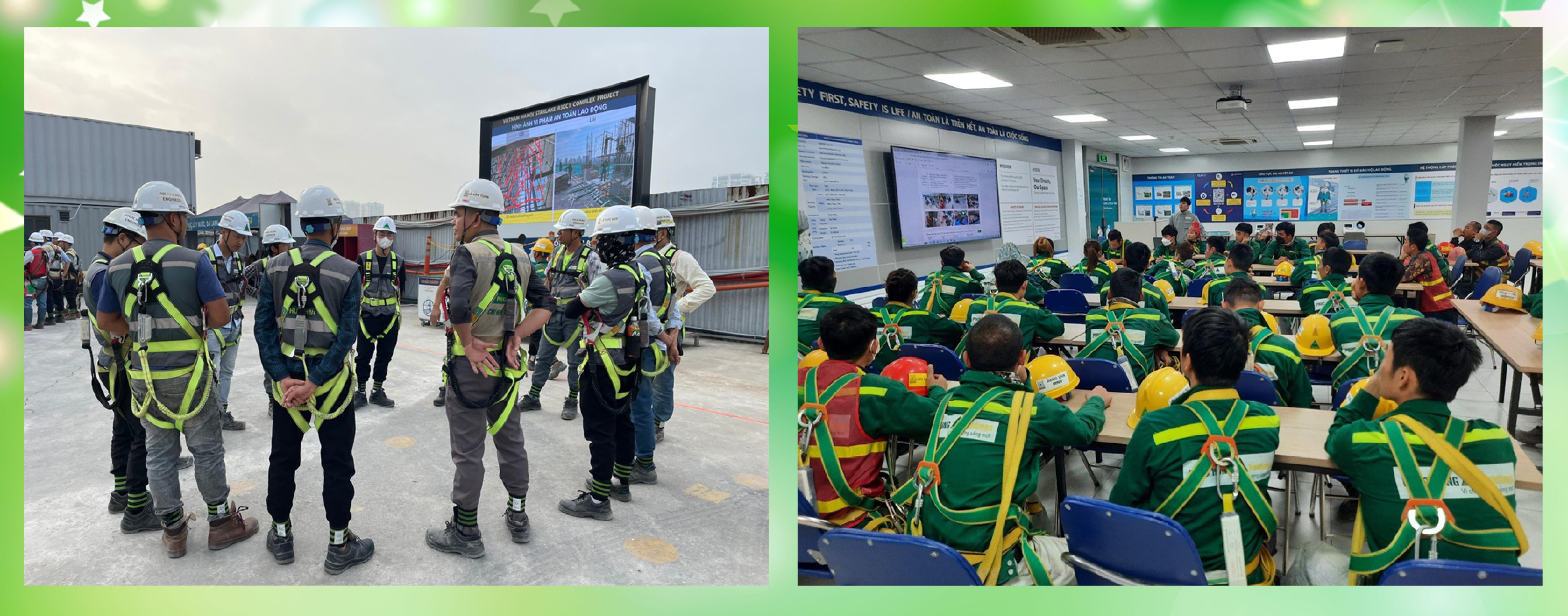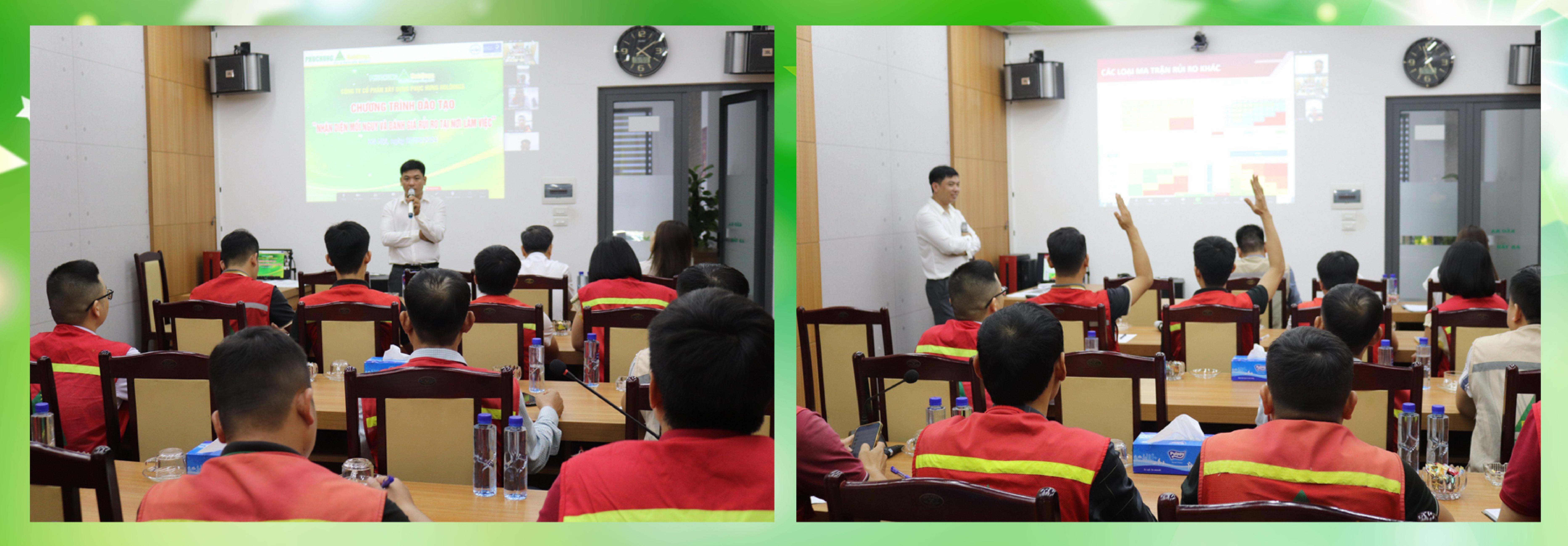 * Tổ chức chương trình đào tạo nhận diện mối nguy và đánh giá rủi ro tại nơi làm việc nhằm hướng dẫn cho cán bộ An toàn, Chỉ huy trưởng rà soát, phát hiện được các mối nguy, các rủi ro tại nơi làm việc trên các công trường.