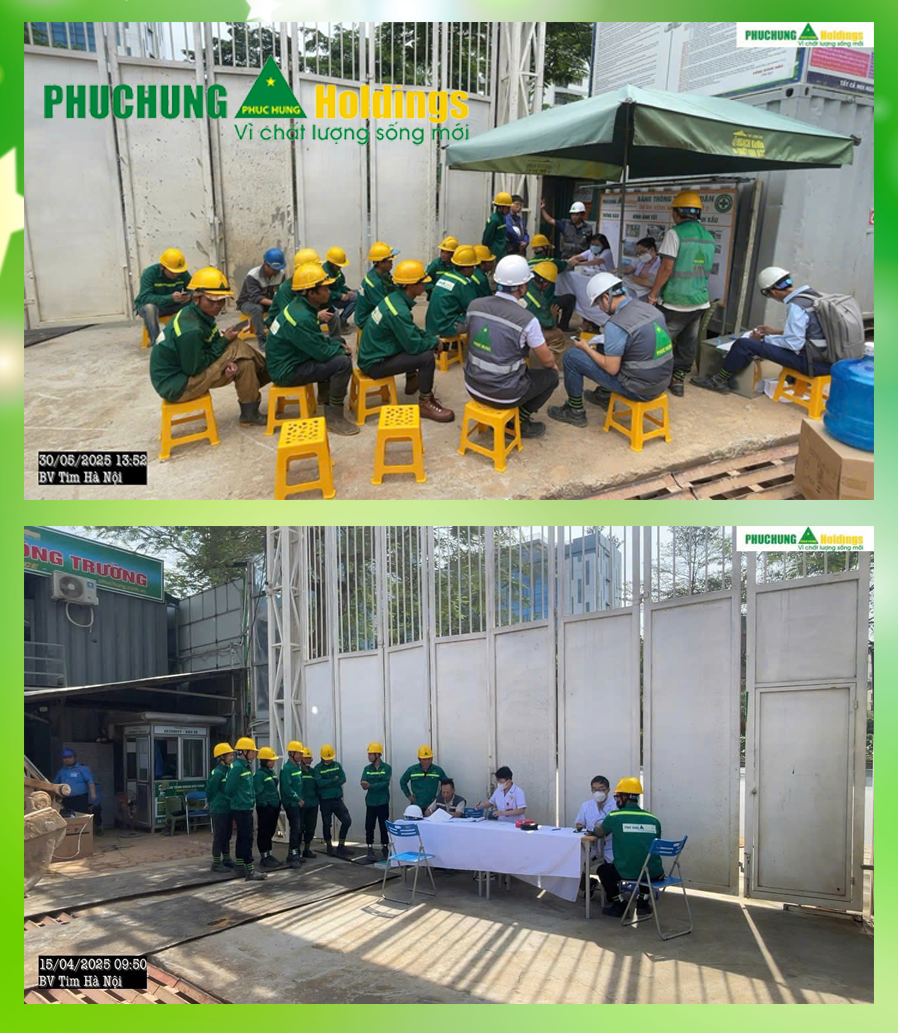 Với tinh thần trách nhiệm cao và quyết tâm giữ vững chất lượng – an toàn – tiến độ trong thi công, đội ngũ cán bộ an toàn và kỹ sư phụ trách kỹ thuật của Phục Hưng Holdings luôn phối hợp chặt chẽ để giám sát tại hiện trường. Người lao động được huấn luyện an toàn hàng ngày, khám sức khỏe đầu vào và định kỳ ngay tại công trường. Các thiết bị, máy móc được kiểm định đầy đủ, kiểm tra nghiêm ngặt trước khi đưa vào vận hành đảm bảo an toàn, hiệu quả phục vụ thi công.