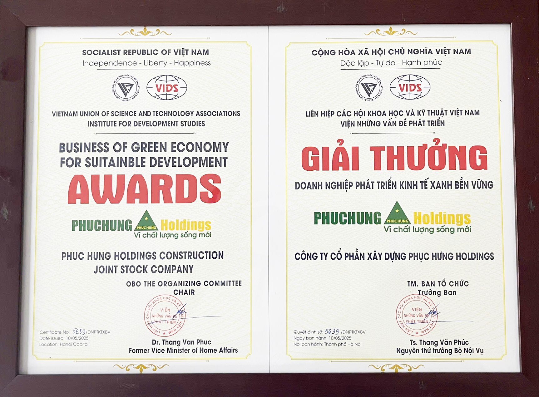 Phục Hưng Holdings nhận giải thưởng "Doanh nghiệp phát triển Kinh tế Xanh bền vững"