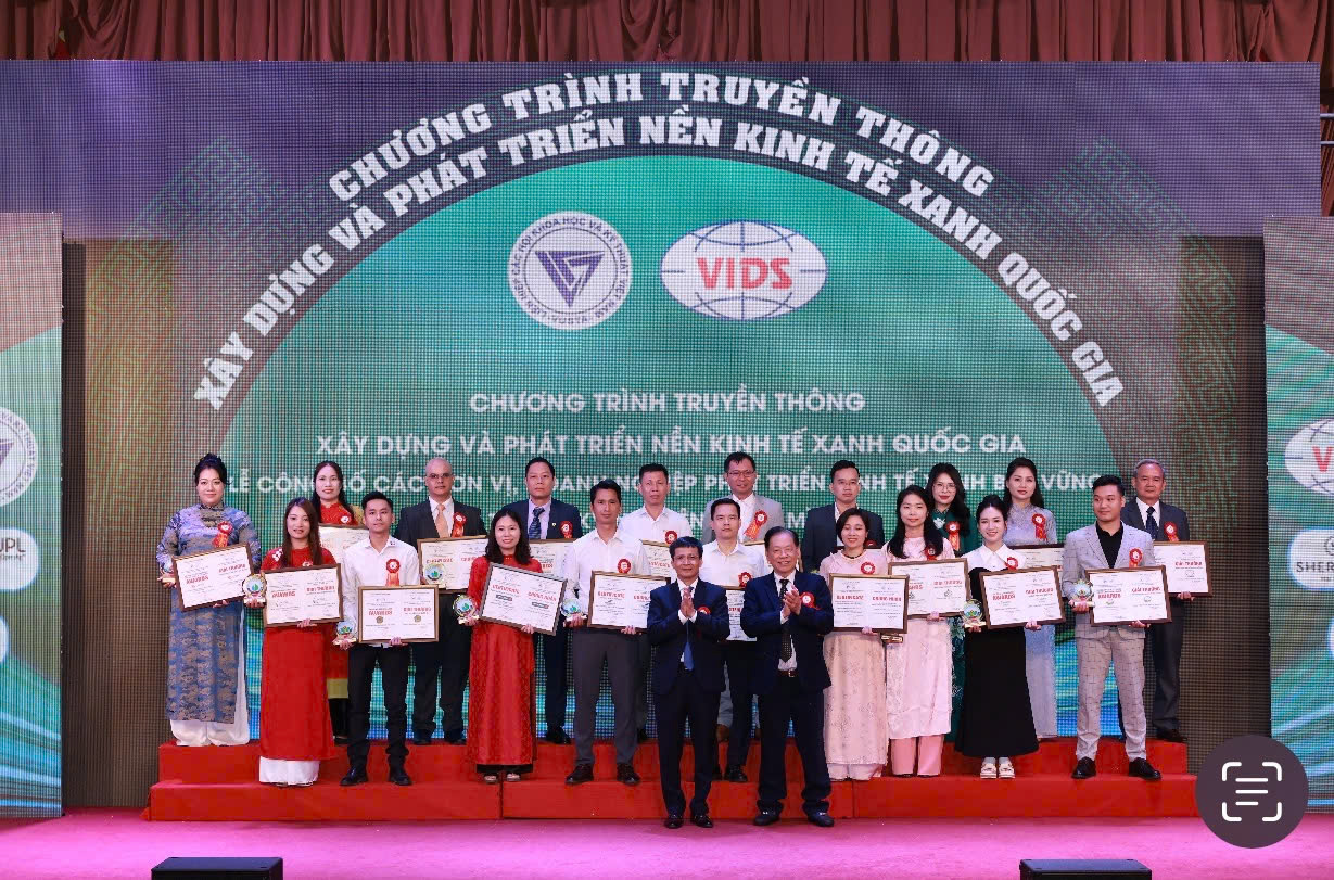 Các đại biểu nhận giải tại chương trình truyền thông Xây dựng và phát triển nền kinh tế xanh Quốc gia năm 2025