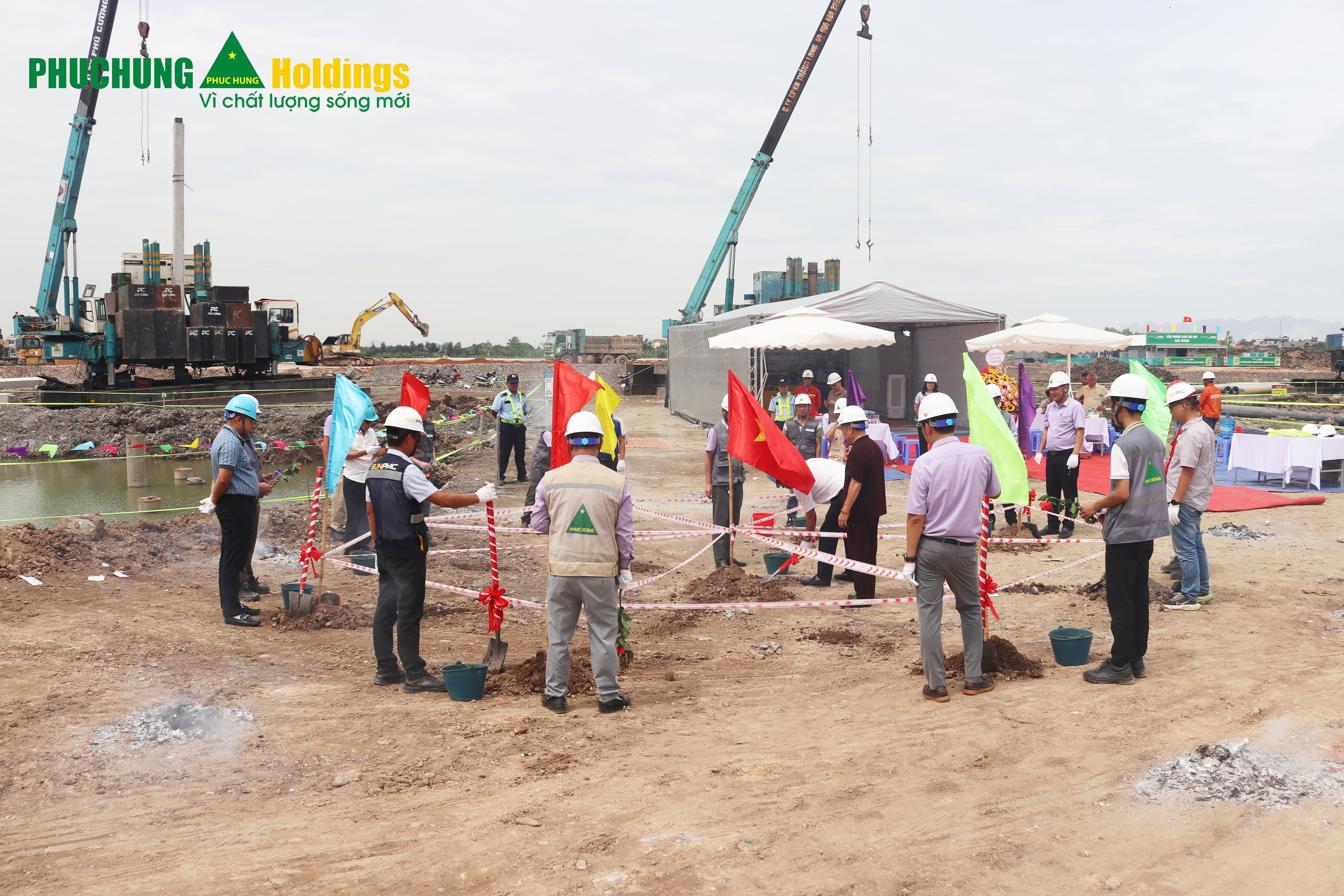 Đại diện Ban quản lý Dự án và Nhà thầu Phục Hưng Holdings tiến hành nghi thức động thổ