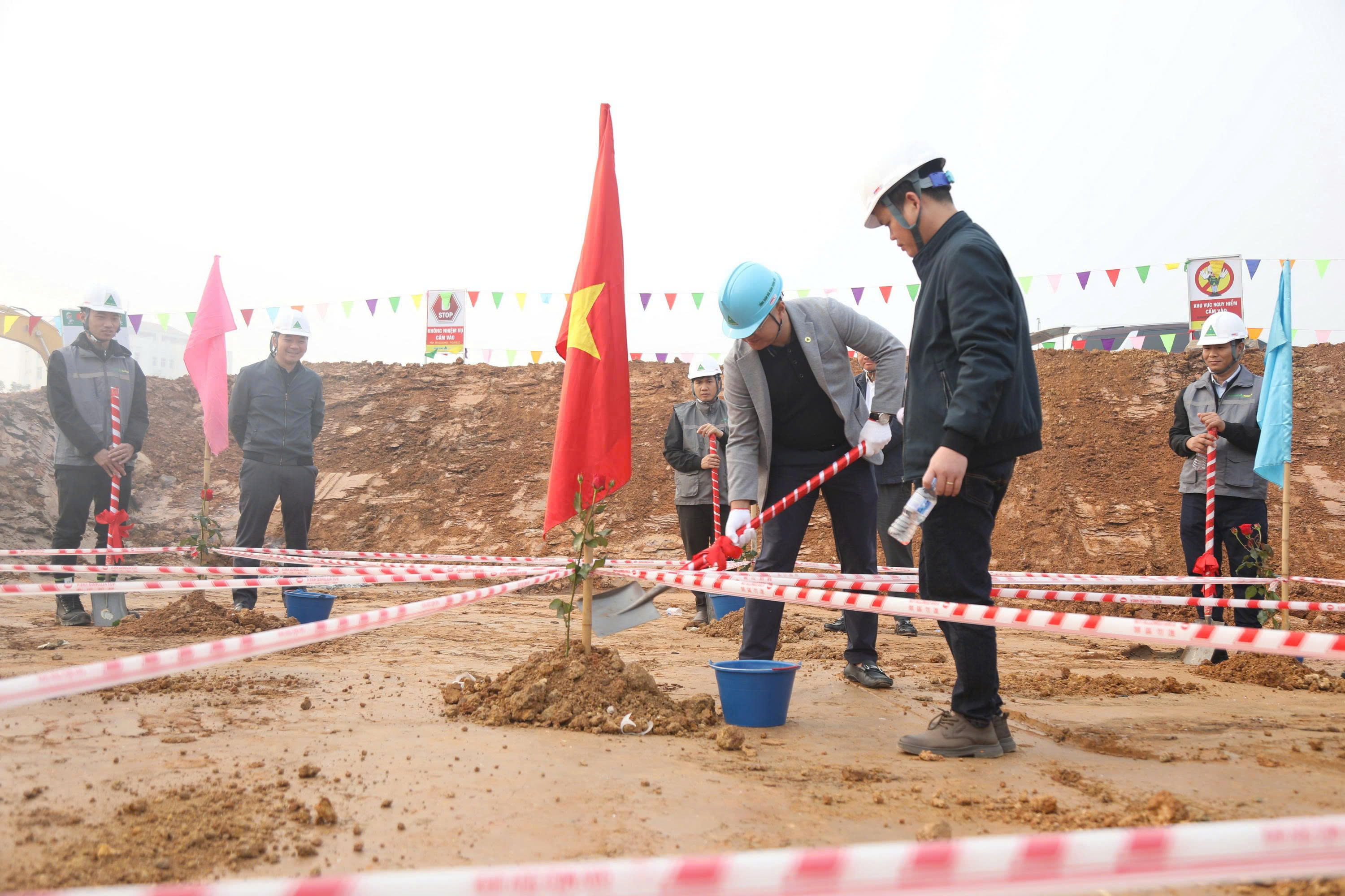 Đại diện Chủ đầu tư Công ty TNHH Xây dựng Tự Lập, Tư vấn giám sát cùng Nhà thầu Phục Hưng Holdings tiến hành nghi thức động thổ