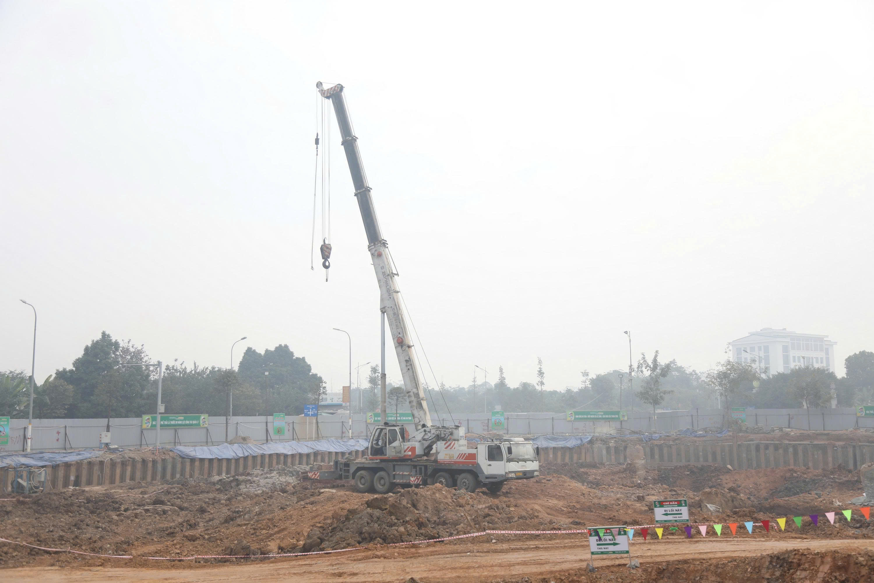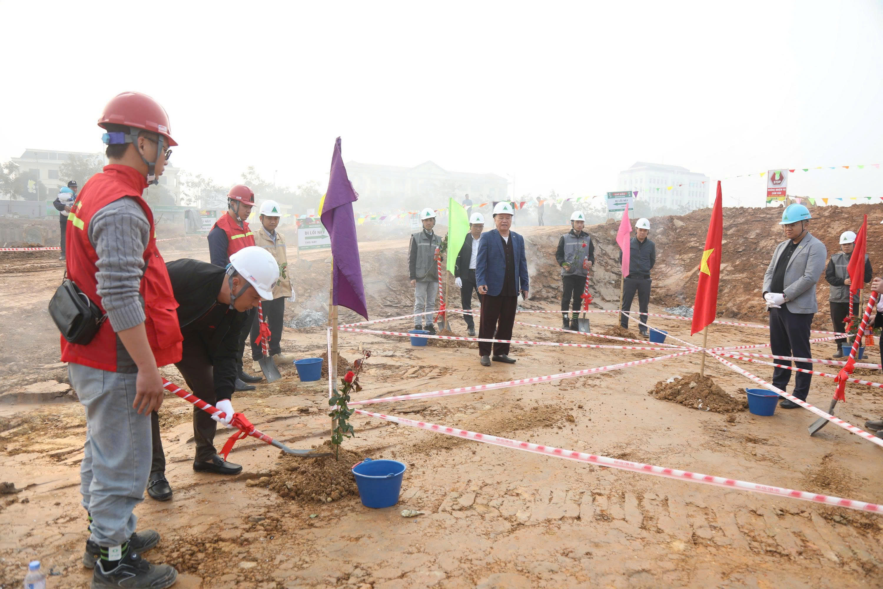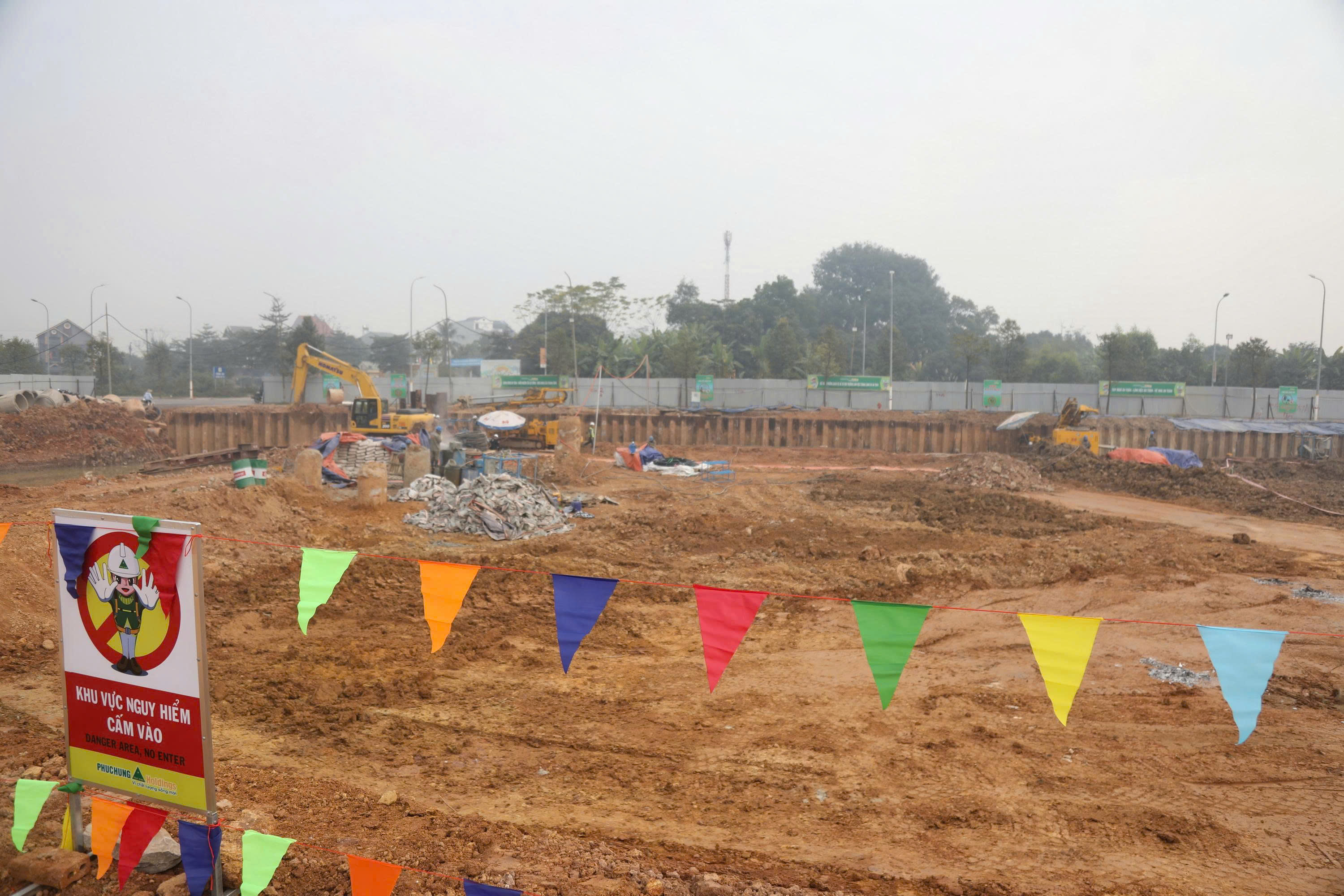 Ngay sau Lễ động thổ, máy móc thiết bị được đưa vào công trường, tiến hành san lấp và xúc đất