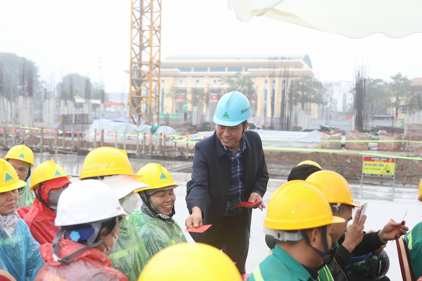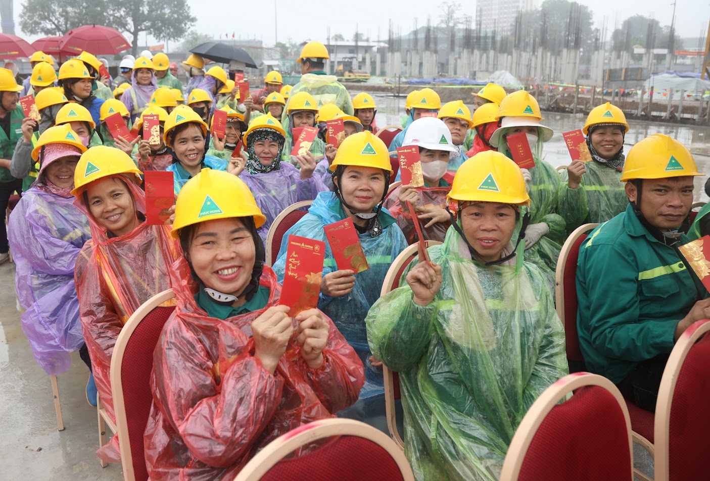 Chủ tịch HĐQT Cao Tùng Lâm trao lì xì đầu xuân tới công nhân trên công trường, gửi gắm lời chúc năm mới an khang, hạnh phúc và hoàn thành thắng lợi các nhiệm vụ năm 2026