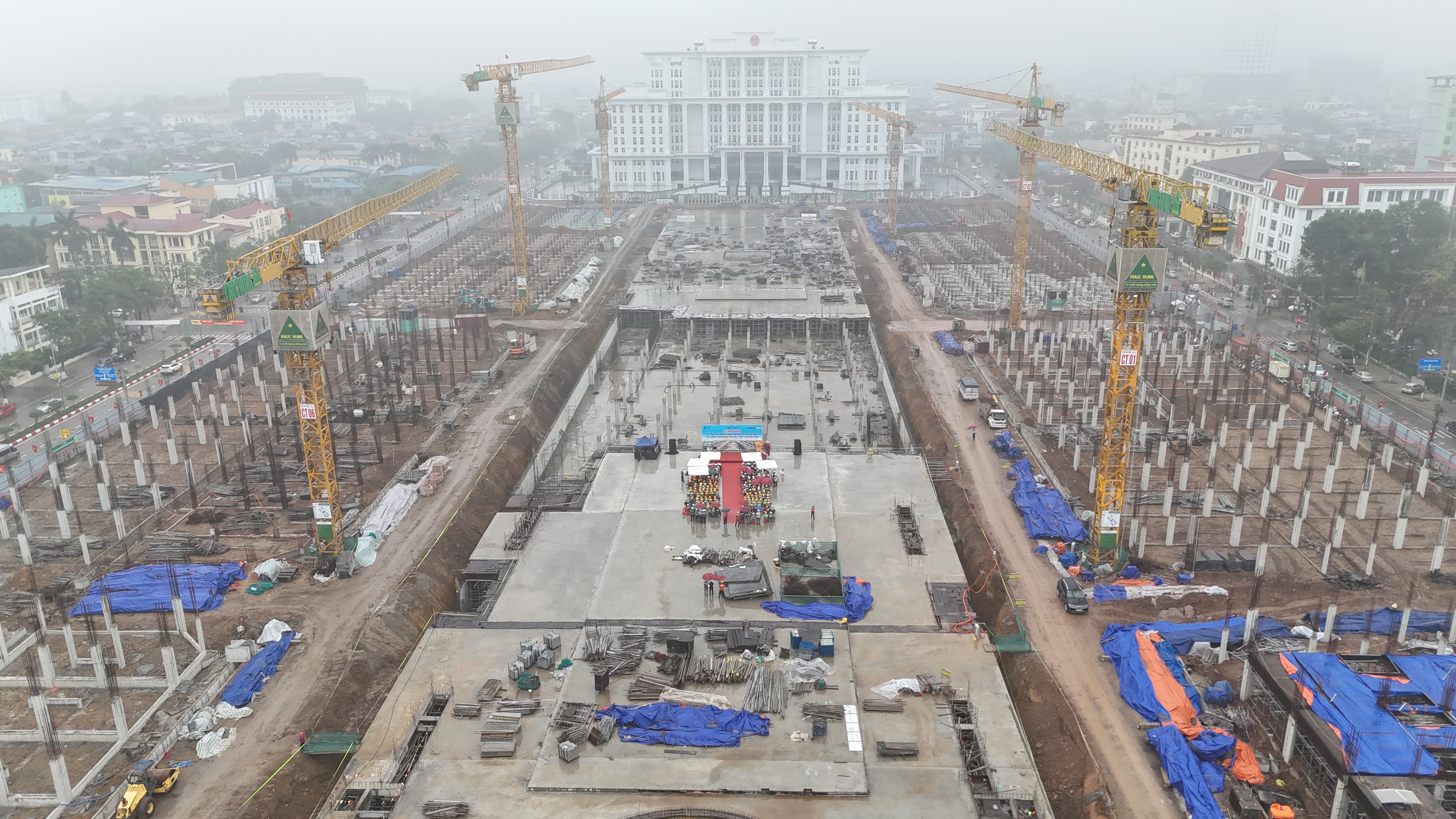Toàn cảnh Lễ ra quân tại dự án Khu đô thị mới, phố đi bộ trung tâm phường Phan Đình Phùng, tỉnh Thái Nguyên