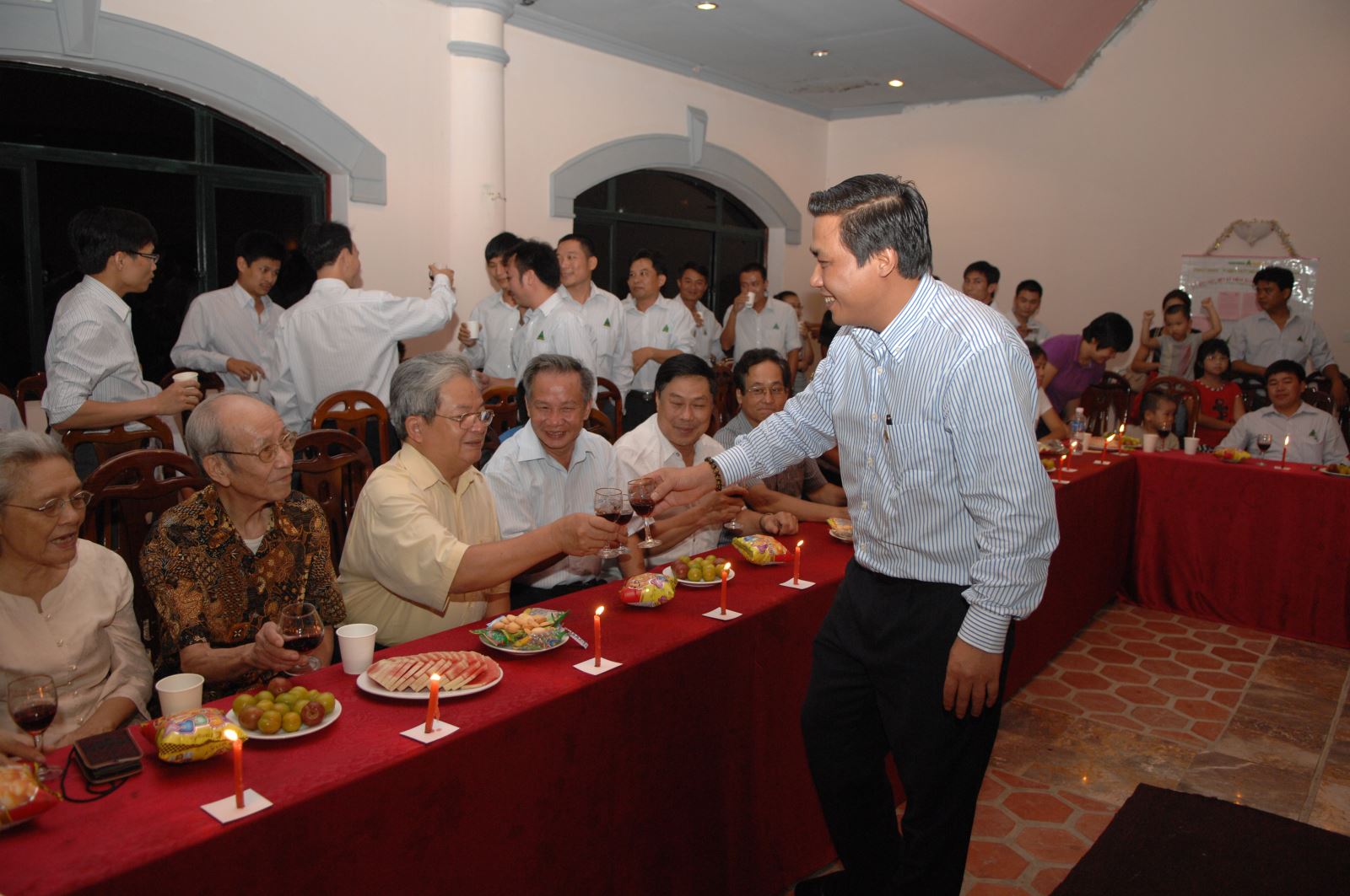 Chủ tịch HĐQT Cao Tùng Lâm nâng ly rượu vang chúc mừng các bậc sinh thành của Ban lãnh đạo PHC tại buổi Gala dinner nhân dịp sinh nhật Phục Hưng Holdings 10 năm tuổi - 2011