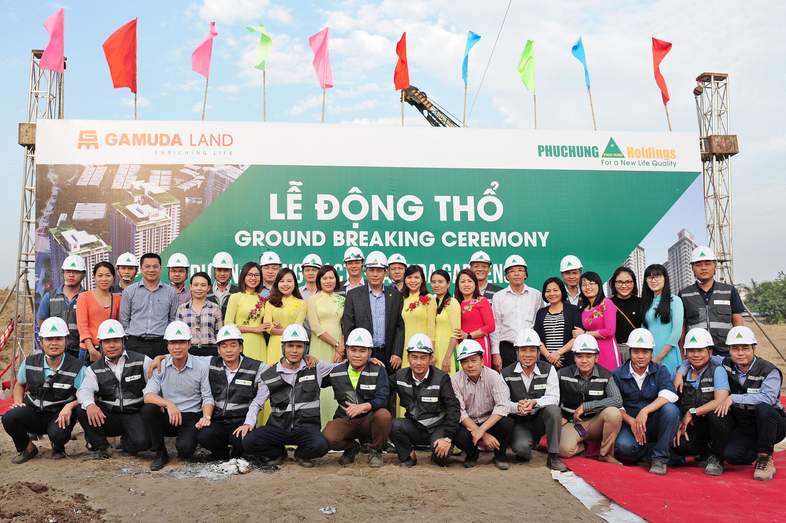 Ban lãnh đạo & đội ngũ kỹ sư, CBNV chụp hình lưu niệm sau khi thực hiện nghi lễ động thổ tại Công trường CT1-Gamuda năm 2016