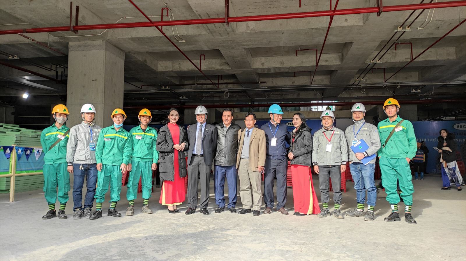 Chủ tịch HĐQT Cao Tùng Lâm chụp hình lưu niệm cùng các thợ giỏi tại Hội thi thợ giỏi ngành Xây dựng Việt Nam năm 2020