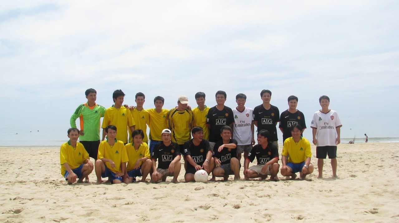 Đội bóng Ban lãnh đạo giao lưu với đội bóng CBNV Phục Hưng Holdings tại bãi biển Lăng Cô-Huế, năm 2009