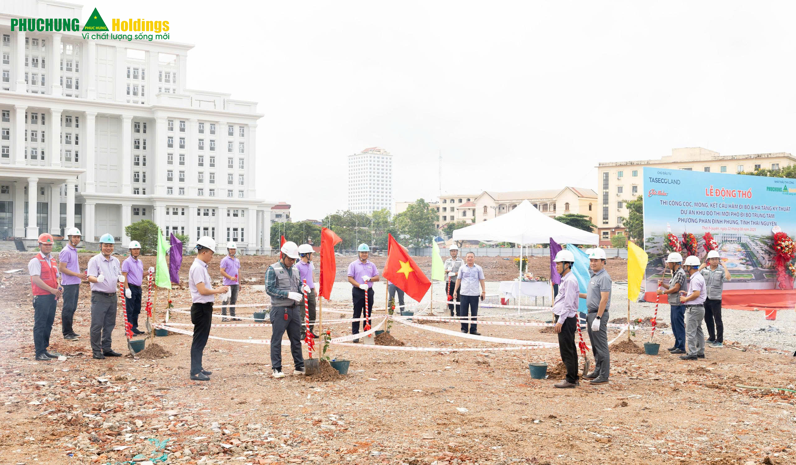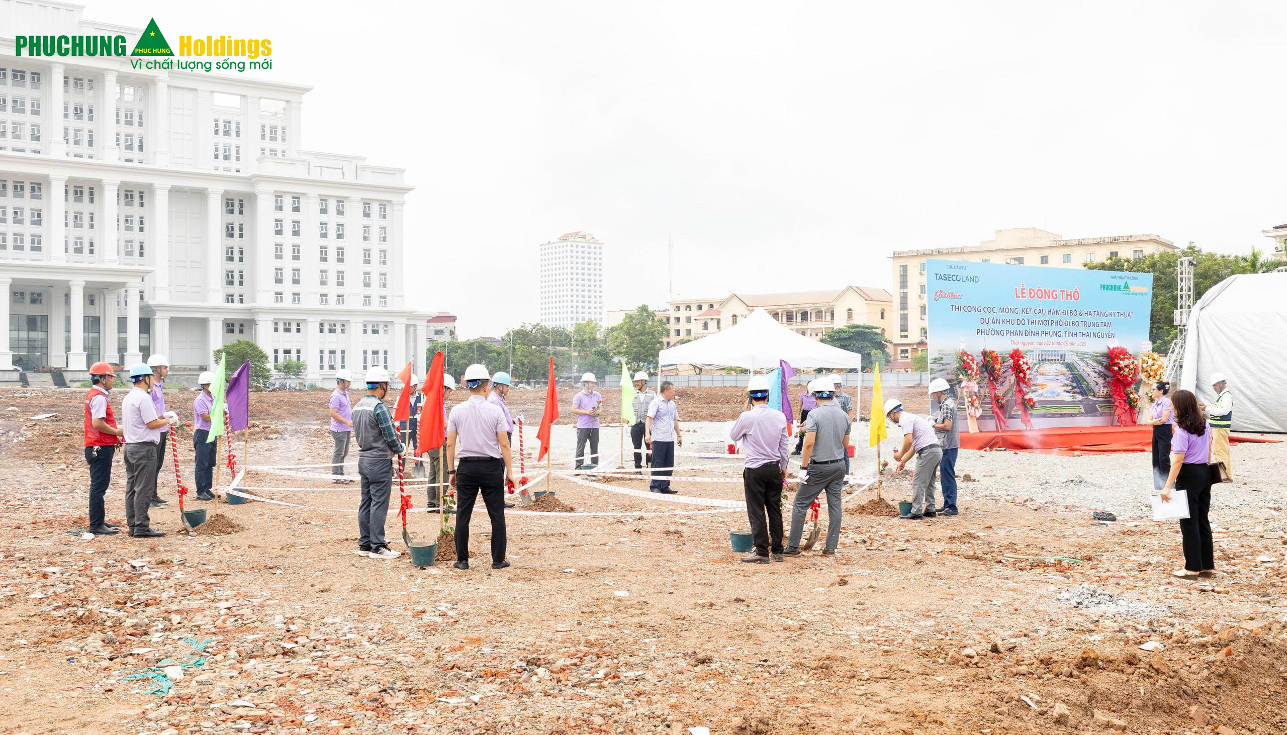 Đại diện Chủ đầu tư Taseco Land, Tư vấn giám sát Apave Châu Á – Thái Bình Dương và Nhà thầu Phục Hưng Holdings tiến hành nghi thức động thổ