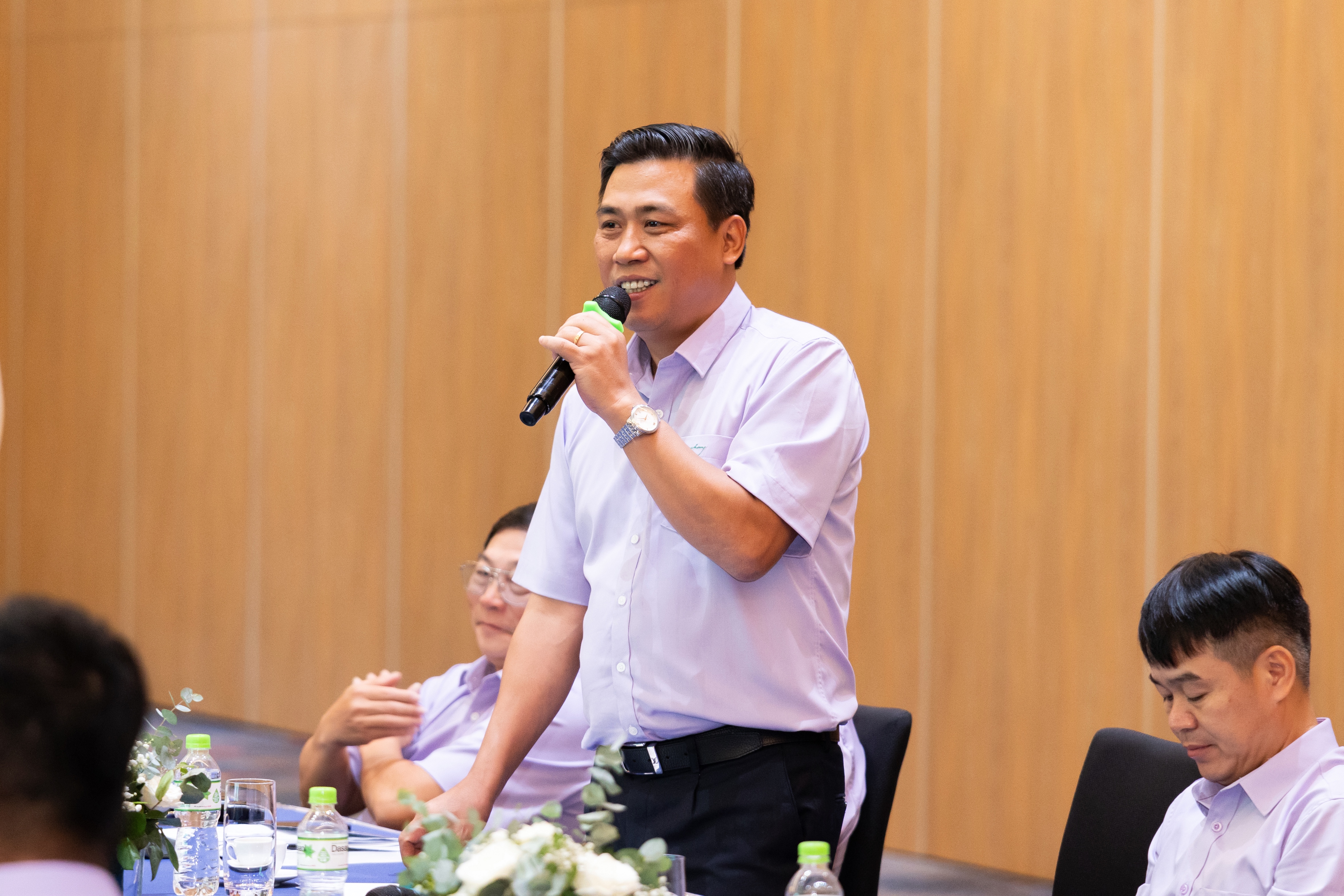 Trưởng phòng Quản lý An toàn phát biểu ý kiến thảo luận liên quan đến công tác đảm bảo An toàn vệ sinh lao động & tăng cường các giải pháp quản lý chi phí trong quá trình thi công